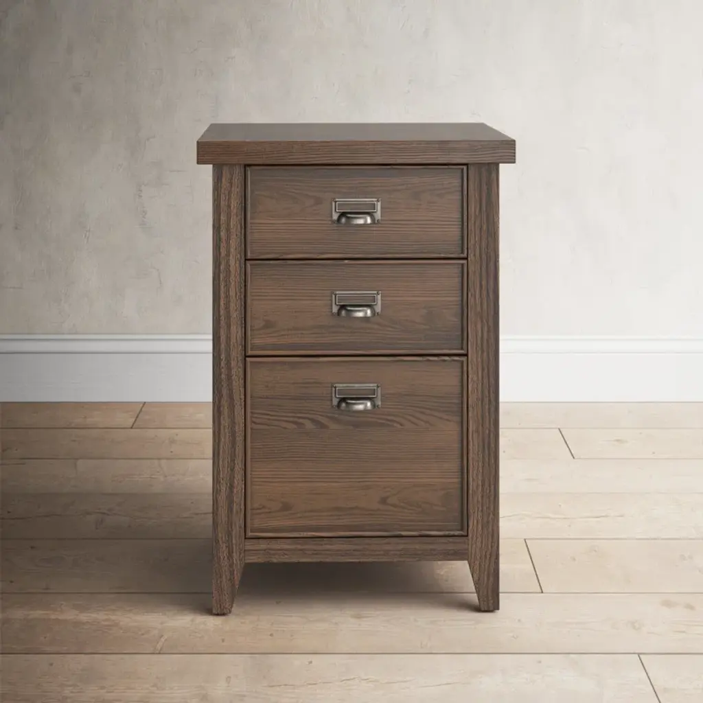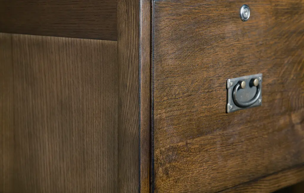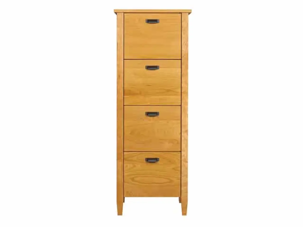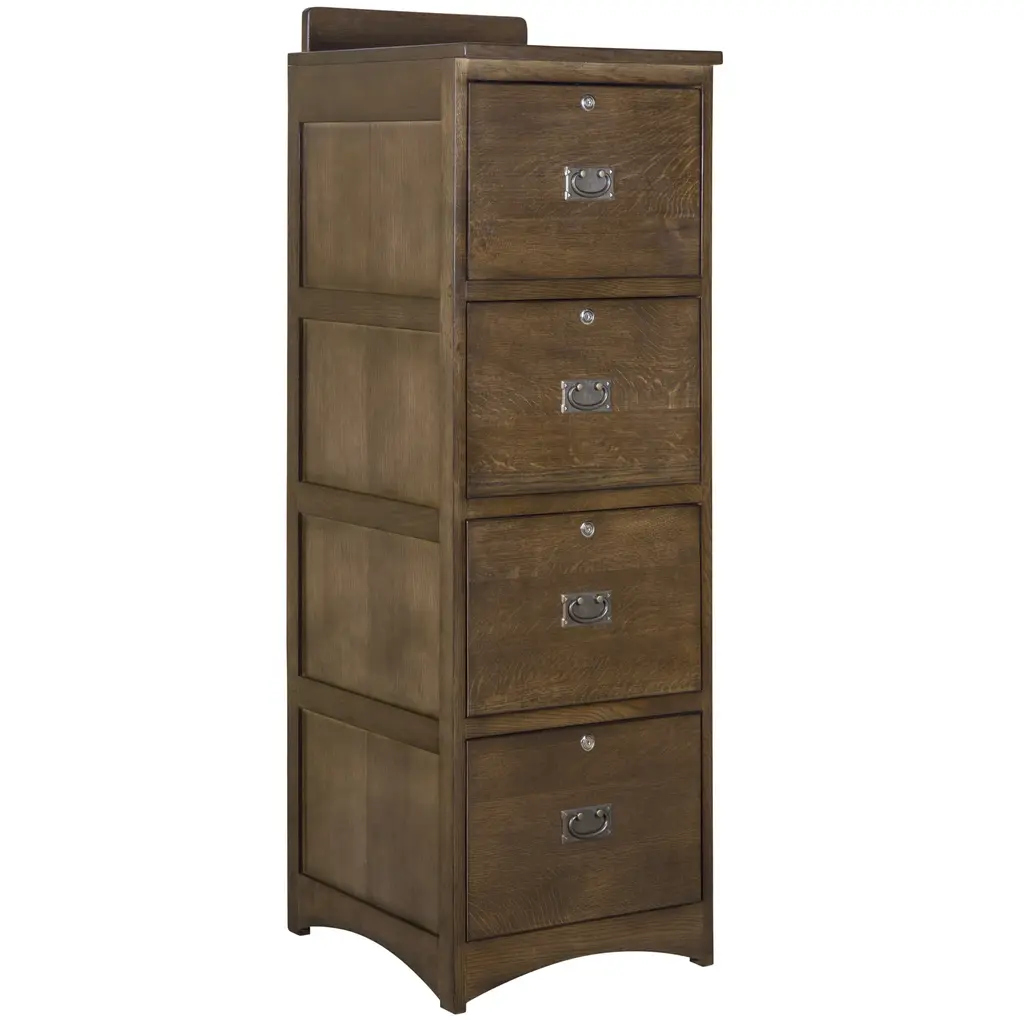 This best selling file cabinet is priced to sell. You won't find a better made cabinet for this price! Solid oak file cabinet with 4 drawers - Made of Solid Oak - Includes lock and key for drawers - Dovetail drawer fronts - Sturdy metal drawer glides - Can accommodate letter size or legal size hanging folders Dimensions: 19W x 26D x 57H