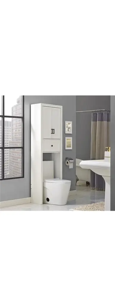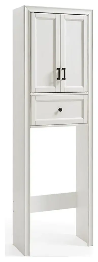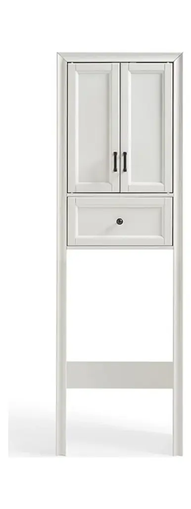 The Tara spacesaver cabinet is a clever, cottage-styled choice to add to any area of your home in need of storage. The free-standing design allows for optimal use of vertical space, while the full-extension drawer and cabinetry provide a spacious place to hideaway necessities like towels, or cleaning supplies. The white finish and bronze hardware are slightly antiqued to bring character to the cabinet without aging it. Utilize every inch with the Tara cabinet.Features:Material: Birch veneer 45%, MDF 45%, solid pine wood 10%Finish: White, blackModern farmhouse bathroom storageGenuine metal hardware in a black finishSpacious storage cabinet with an adjustable and removable bathroom shelfBeneath the medicine cabinet is a full-extension storage drawerPairs well with traditional decorAnti-tip hardware: YesIndoor furnitureCottage style doors and detailingISTA 3A certifiedEasy to assembleSpecifications:Product Dimensions: 72"H x 22"W x 11"DProduct Weight: 56.76 lbsNumber of Doors: 2Number of Drawers: 1Shelf Weight Capacity: 15 lbsProduct Dimensions: (Floor Clearance) 9.5"Drawer Weight Capacity: 15 lbs