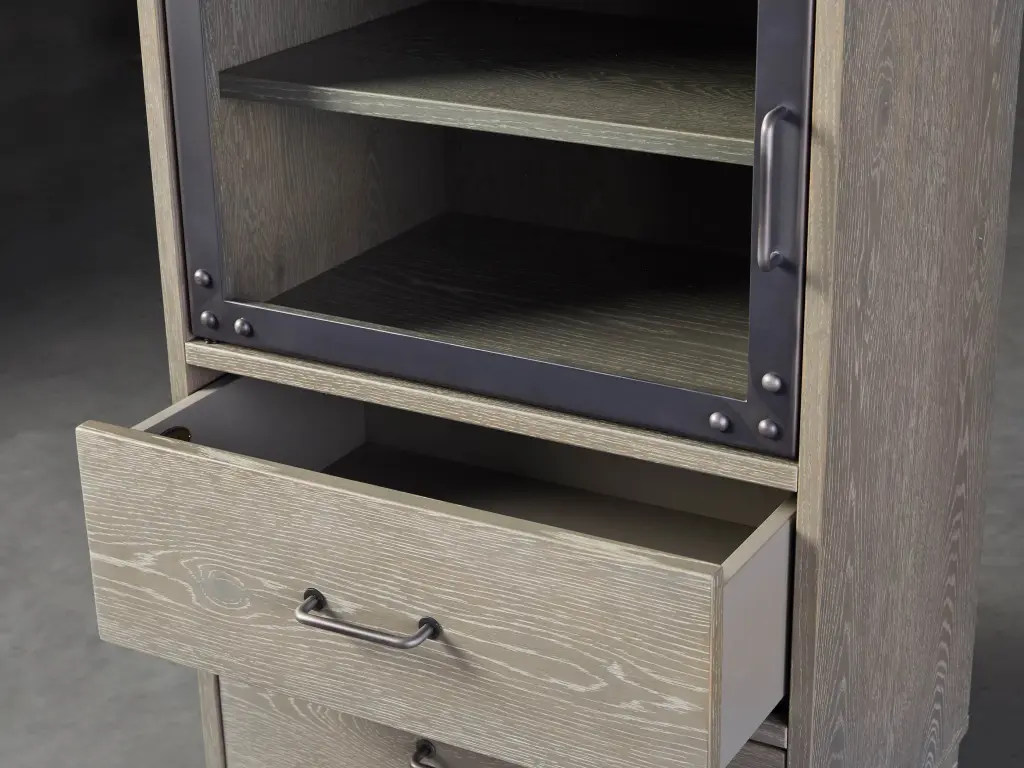 Inspired by the design of classic apothecary cabinets, our Curiosity Collection is comprised of modular cabinets of differing heights, allowing pieces to be grouped together as a grand wall cabinet or configured separately throughout your living space. Made by Indonesian artisans skilled in the art of woodworking and wood-finishing—these designs bring together solid oak wood, oak veneers, and tempered glass framed in antiqued iron to create vintage style and versatile functionality.