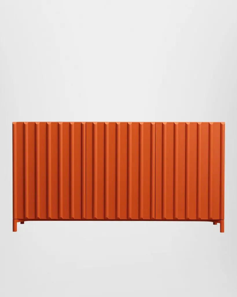 Defined by minimalist lines and elegant functionality, Curl in fire-red offers a striking presence. The cabinet’s unique design combines contemporary style with a nod to classic furniture forms. Its robust MDF structure, finished with a matte lacquer, features the innovative front panels, which evoke the natural beauty of curved surfaces. The push-pull door mechanism adds a modern touch, and the piece is customizable with various color and finish options to match any interior style.