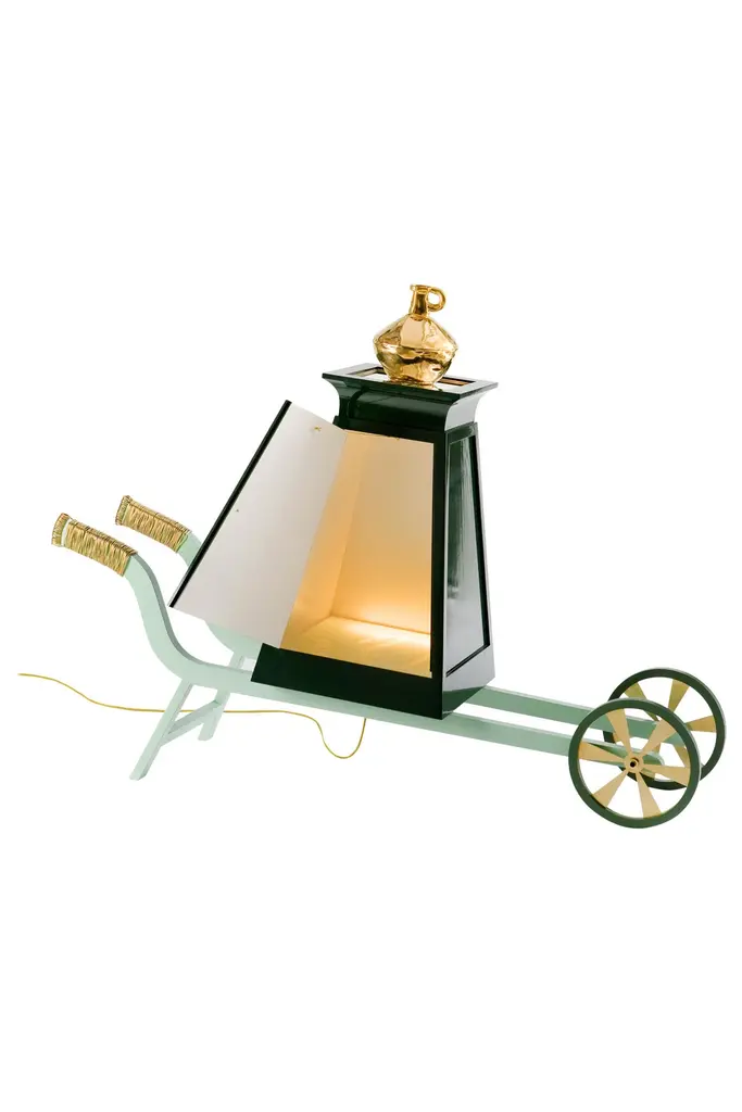 Cut and Paste is a stunning collection of renowned museum pieces designed in 2010. The reference is an imaginary world in which everything is mixed. combined and questioned: small scale with big. simple with luxurious materials. farm with bourgeois or Primitive.By first making hundreds of sketches and no use of a computer. 7 final pieces are made with various references such as high clock. bird cage. wheel or cart. using various materials as wood. steel. ceramic. glass and textile. Each one becomes an art piece with its own imaginary and personal poetical world. These pieces show that often the line between art and design is almost invisible.