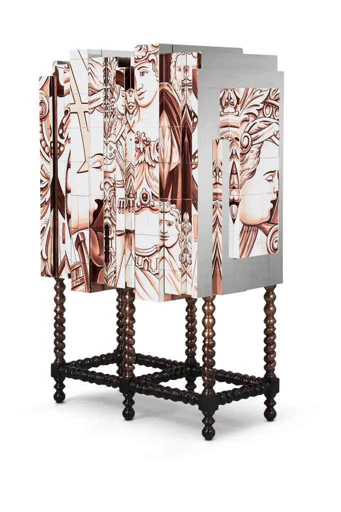 Heavily inspired in Portuguese history and culture, the Dom Heritage is a cross between two of Boca do Lobo’s most iconic design pieces, keeping the form of the Dom Manuel cabinet, with the use of the azulejo finish found on the Heritage pieces. Used to tell tales and stories, azulejo tiles became increasingly popular during King Manuel’s reign, representing a landmark in Portuguese architecture. The Dom Heritage is a tribute to the country’s grand epoch, as well as to it’s traditional artisan crafts which Boca do Lobo seek to keep alive.