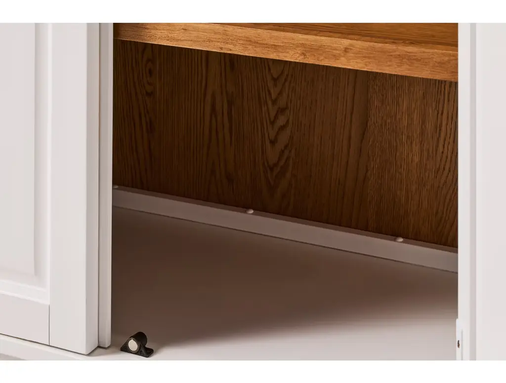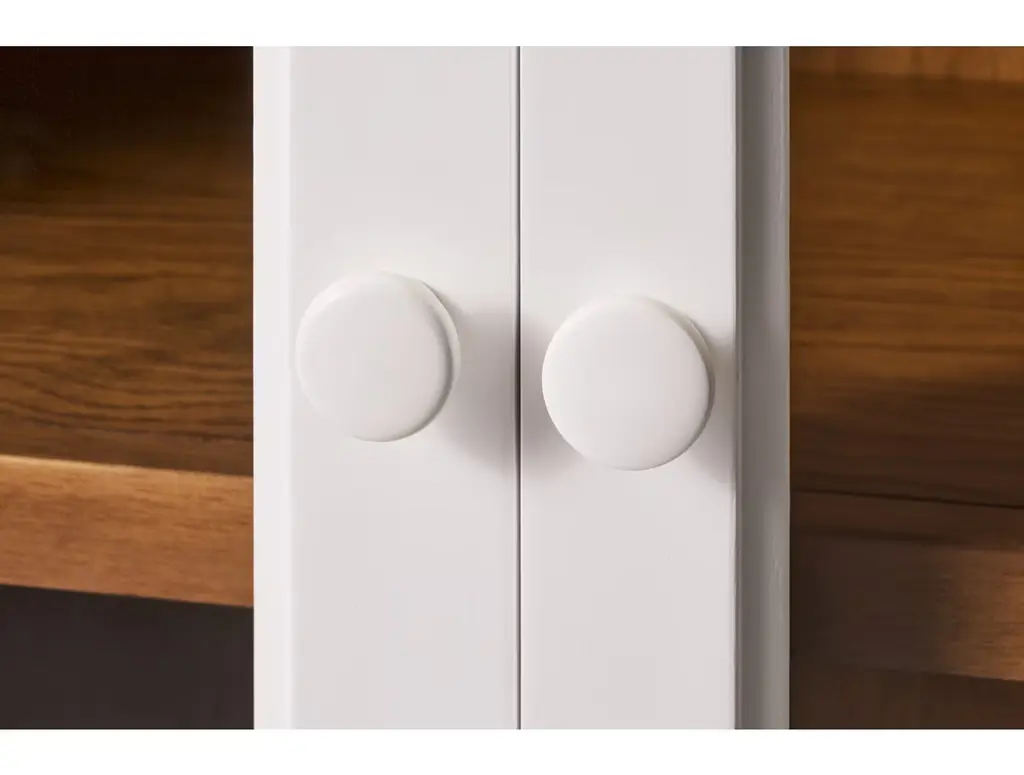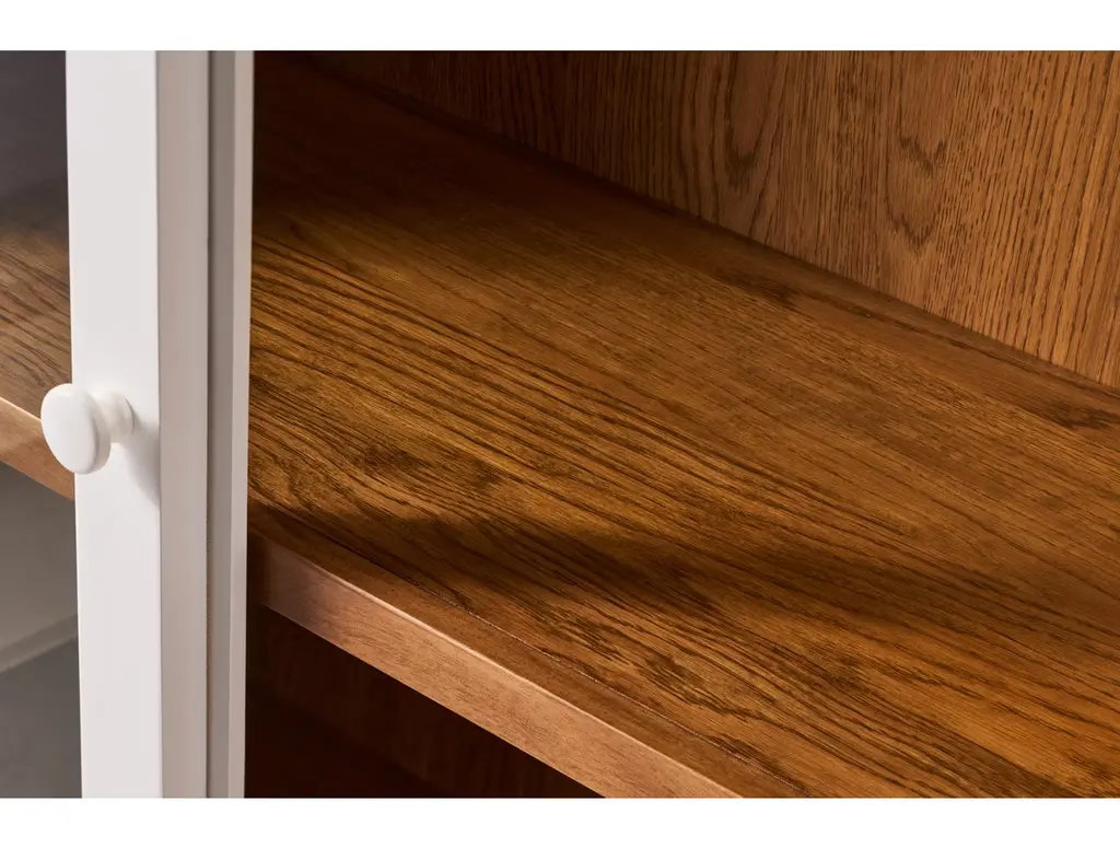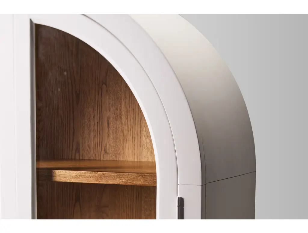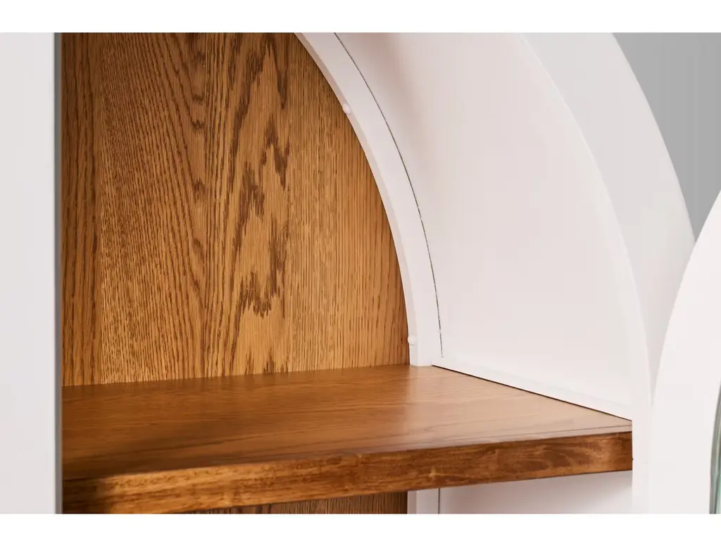 Display your souvenirs and treasures inside the Ashley Dagandale Accent Cabinet. This statement-making pieces boasts an arched top and tapered square legs. The two glass-front doors are solid paneled at the bottom to hide items you don't wish to display. Two fixed and one adjustable shelf give you many storage and display options.