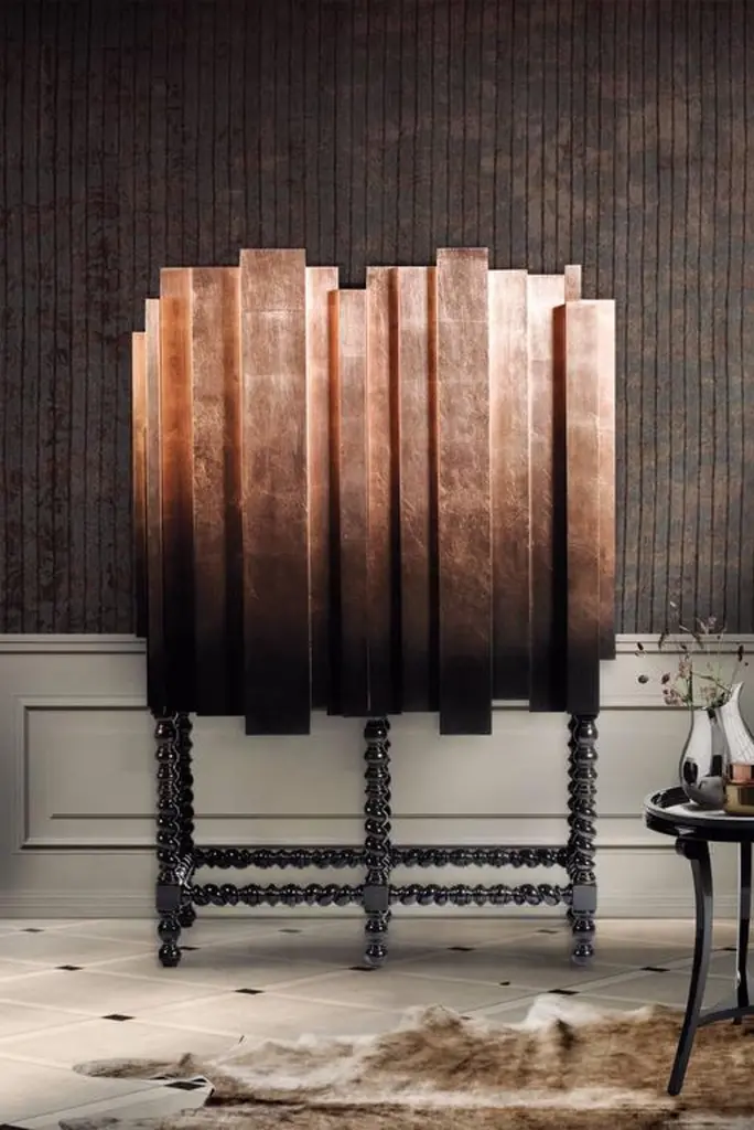 Dali Copper Cabinet Solid Mahogany Copper Leaf And Black Laquered