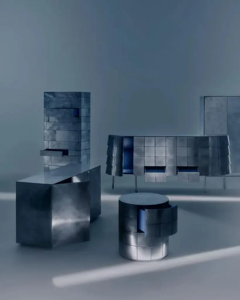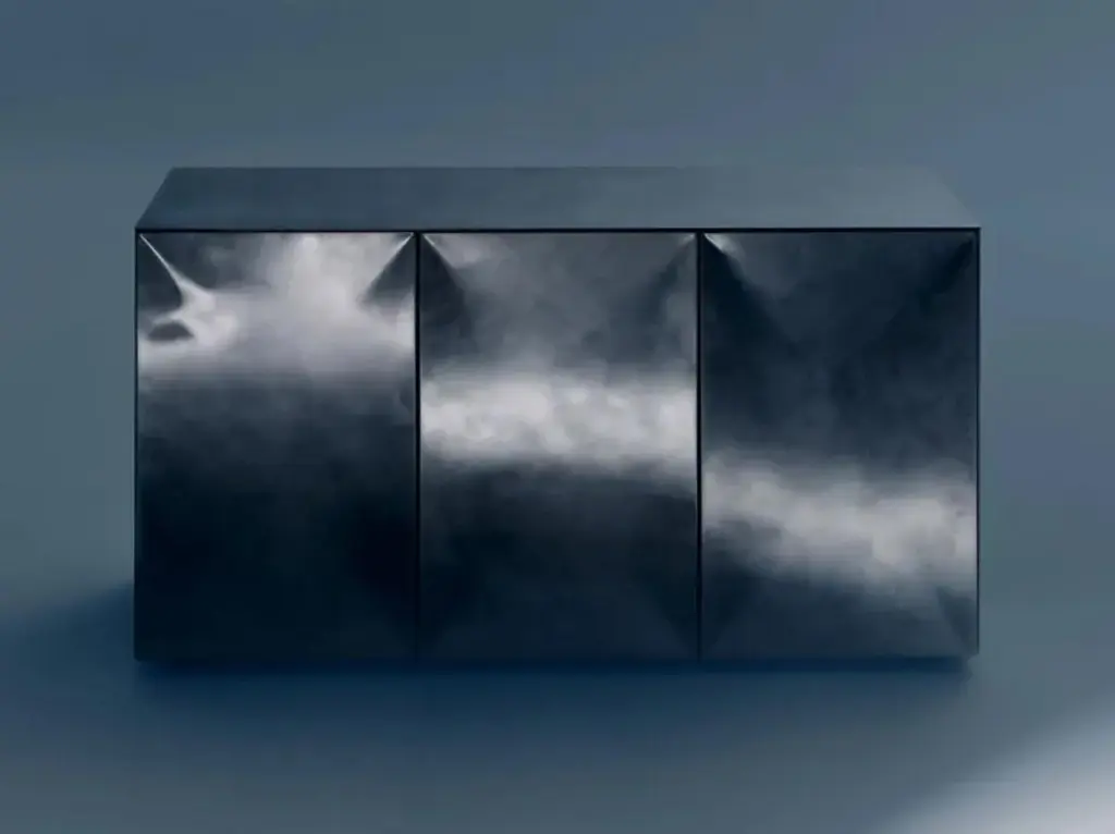 Just as stone can be sculpted by an able stonecutter, hammering and rounding techniques can mould metal into supple, organic shapes. Sculpt is a sideboard characterised by understated aesthetics and three-dimensionality, which complete and enhance each other to highlight the processes and finishes applied to the metal it’s made of. Bordered by crisp edges, the soft yet well-sculpted concavities of the doors mark the rhythmic pace of light and shadow as they play upon the surface, underscored by a surprising finish that gives the cabinet the elegance and sheen of silk.At Milan Design Week 2025, De Castelli presents Iridium Edition: a selection of the brand’s iconic furniture which fully expresses its aesthetic. The unique cobalt blue lacquer on the inside combined with the new DeIridium finish transforms each piece into a presence with intense, vibrant character.DIMENISIONS:D. 42 x W. 124.5 x H. 65.5 cm