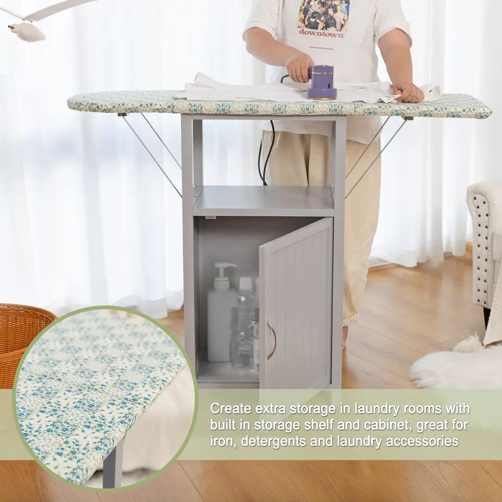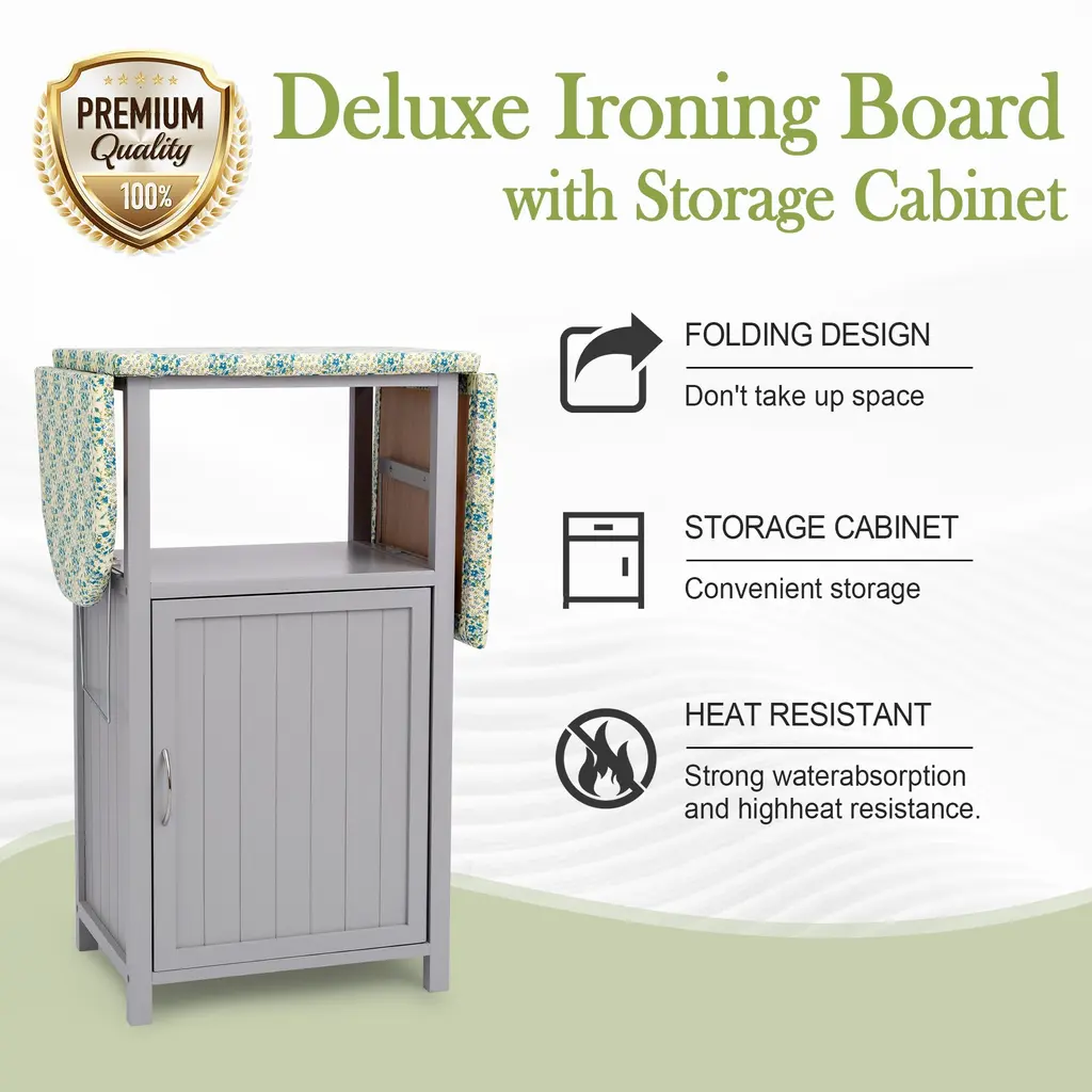 Deluxe Ironing Board With Storage Cabinet, Perfect For Small Spaces With Extra Storage, Folding Station - Grey