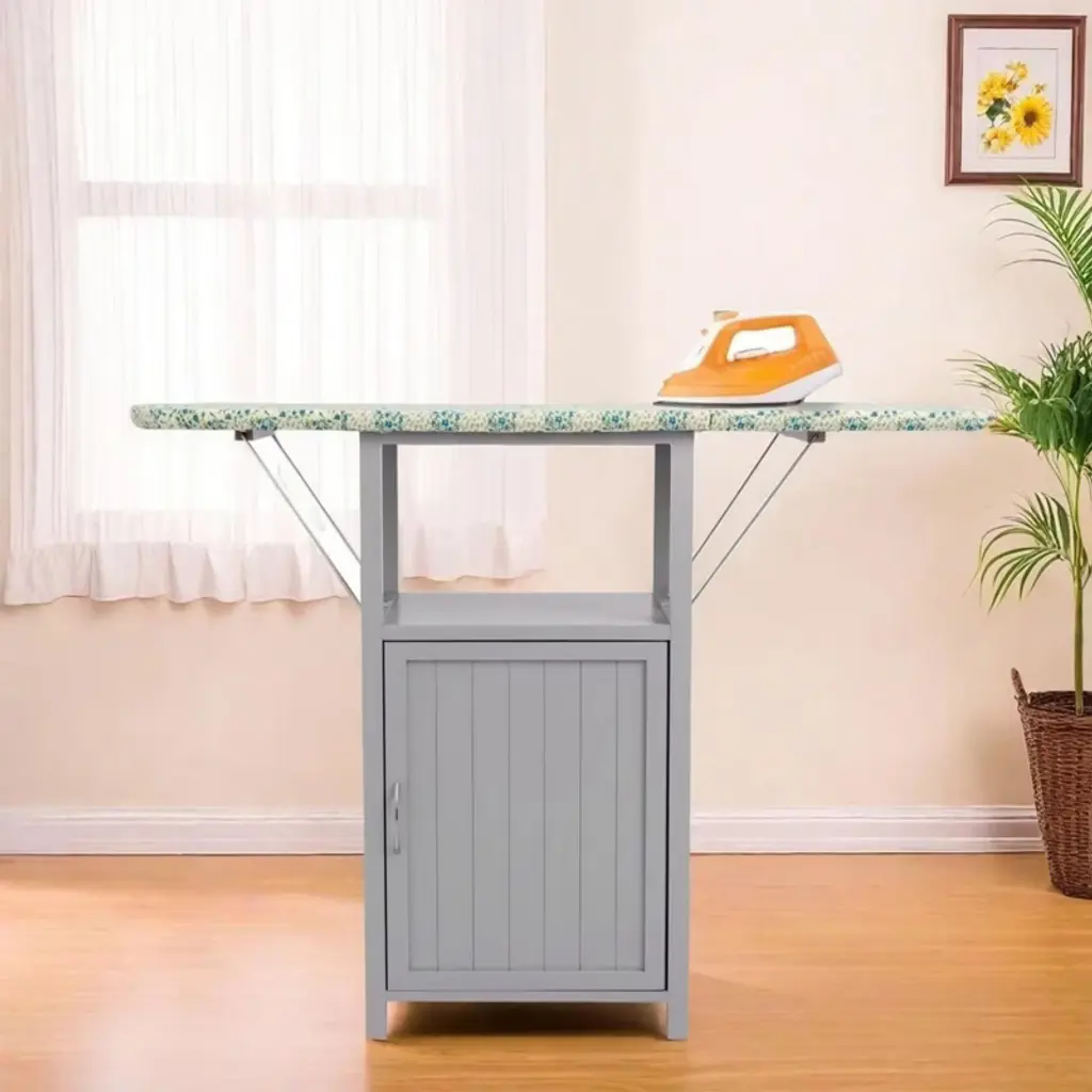 the Deluxe Ironing Board with Storage Cabinet, designed specifically for small spaces. This multifunctional ironing station features a sleek, foldable design that easily fits into any corner of your home. The integrated storage cabinet provides ample space for your ironing essentials, keeping everything neatly organized and accessible. Say goodbye to clutter and enjoy a more efficient ironing experience with this stylish and practical solution.1. Space-Saving Design: Folds away easily for compact storage in tight areas.2. Integrated Storage Cabinet: Includes shelves for organizing ironing supplies and accessories.3. Durable Construction: Sturdy materials ensure a reliable ironing surface that lasts.4. Stylish Appearance: Modern design complements any home decor while enhancing functionality.