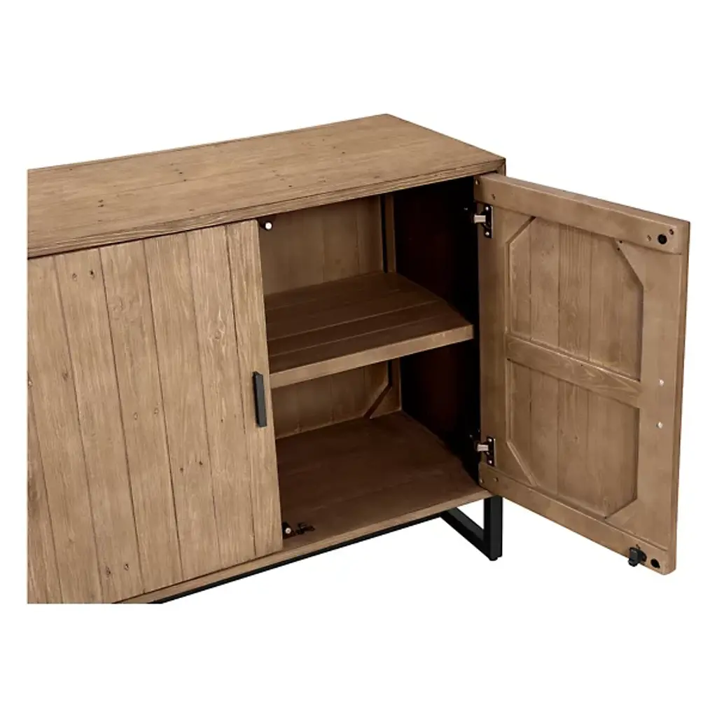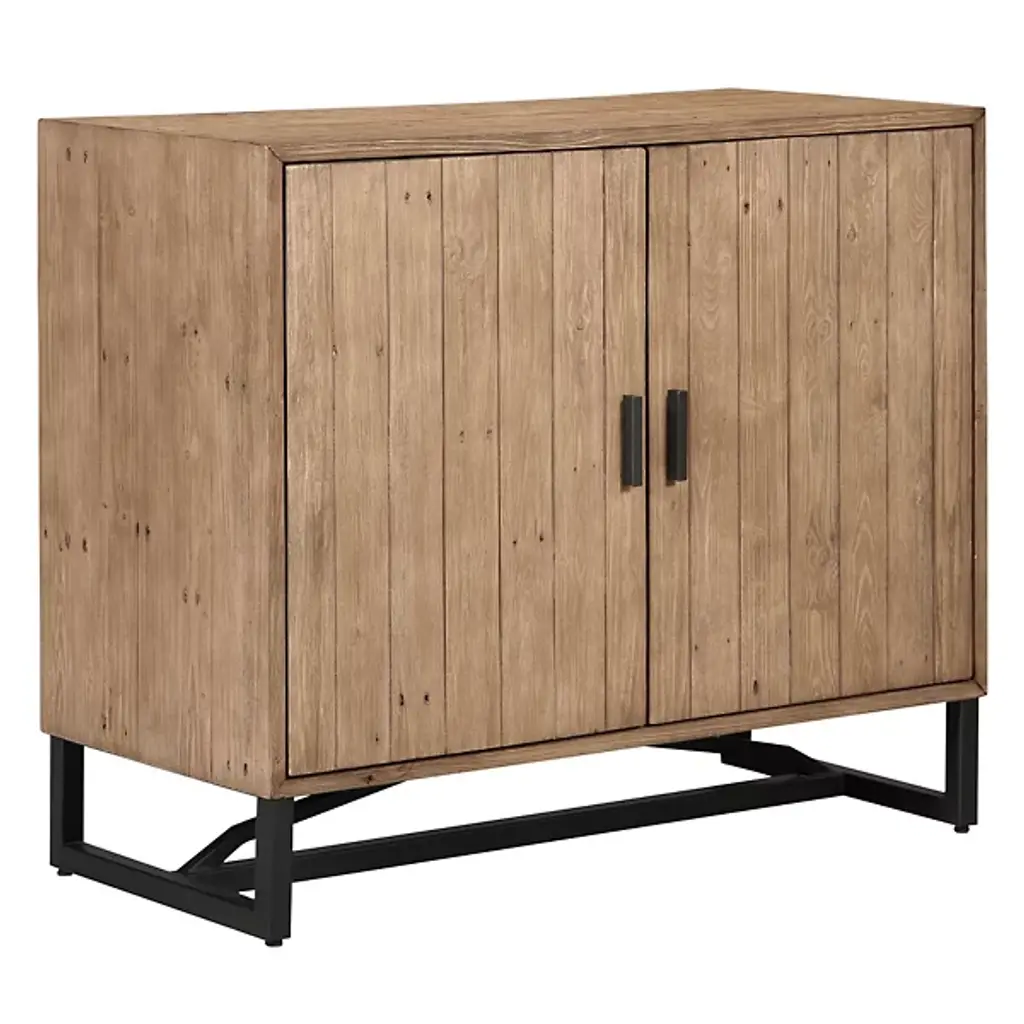 Give your decorative arrangement an Art Deco vibe with the Denise 2 Door Cabinet from Huxe. This cabinet is composed of durable wood, which boasts a plank-style design seen through the surface of Sierra’s doors. Each door of your cabinet has its own handle for your convenience. A shelf rests neatly behind the doors to provide ample space for storing your possessions, keeping your room tidy and presentable. The Sierra 2 Door Cabinet is supported by a frame of fine iron.