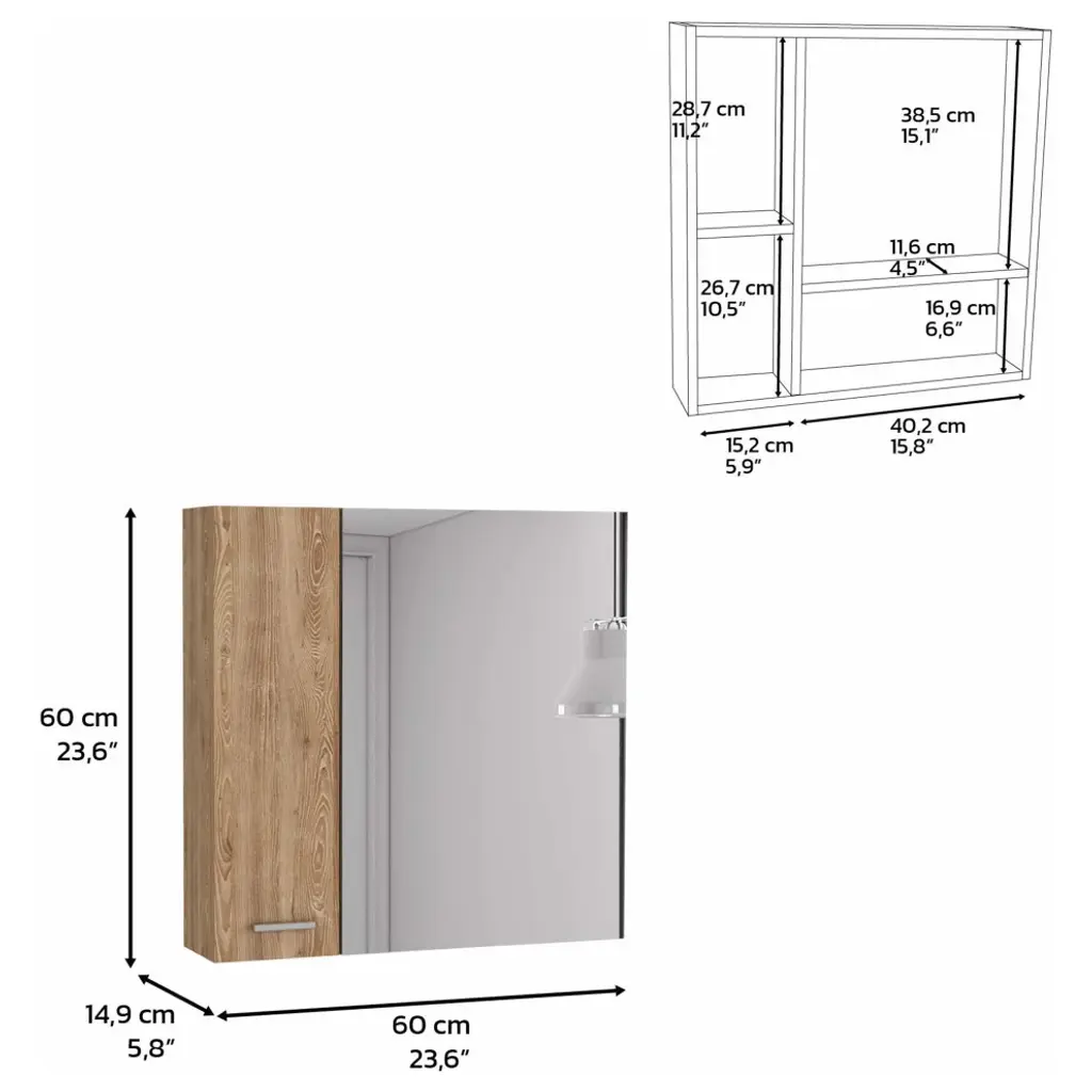 The Harbour Mirrored Medicine Cabinet is a beautiful and functional addition to any bathroom. It’s the perfect size for any bathroom, coming in at 23.6" W x 5.8" D x 23.6" H. The pine finish adds a rustic touch to the cabinet, while the mirrored doors reflect light and create a spacious feel. The cabinet features ample storage space for all your bathroom essentials, including medicine, toiletries, and more. The Harbour Mirrored Medicine Cabinet is easy to install and will provide years of use and style to your bathroom.Features4 shelves provide ample storage space for all bathroom essentialsPine finish adds a rustic touch to the cabinetMirrored doors reflect light and create a spacious feelEasy to install and provides years of use and style to your bathroom.Features metal handles for your convenienceOne year warranty for your peace of mindDimensions:MirrorAssembled Product: 23.6 inches wide x 5.8 inches deep x 23.6 inches highWeight Capacity: 39 poundsAdditional Dimensions*We take care of your spaces with our excellent quality and minimalist style. Delivering solutions for your living room, kitchen, and bedroom, Depot E-Shop offers the best furniture at amazing prices. We have what you need, from practical storage to statement pieces to modern office solutions.