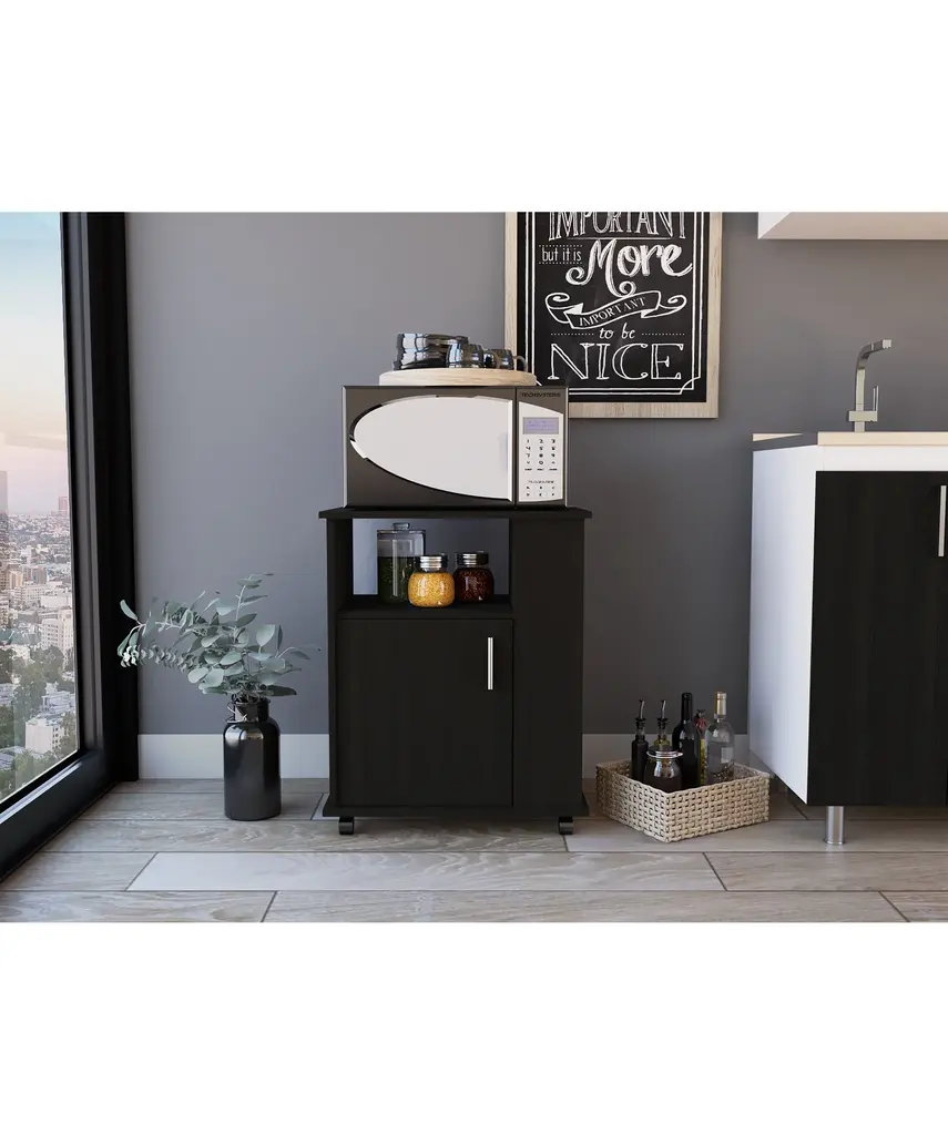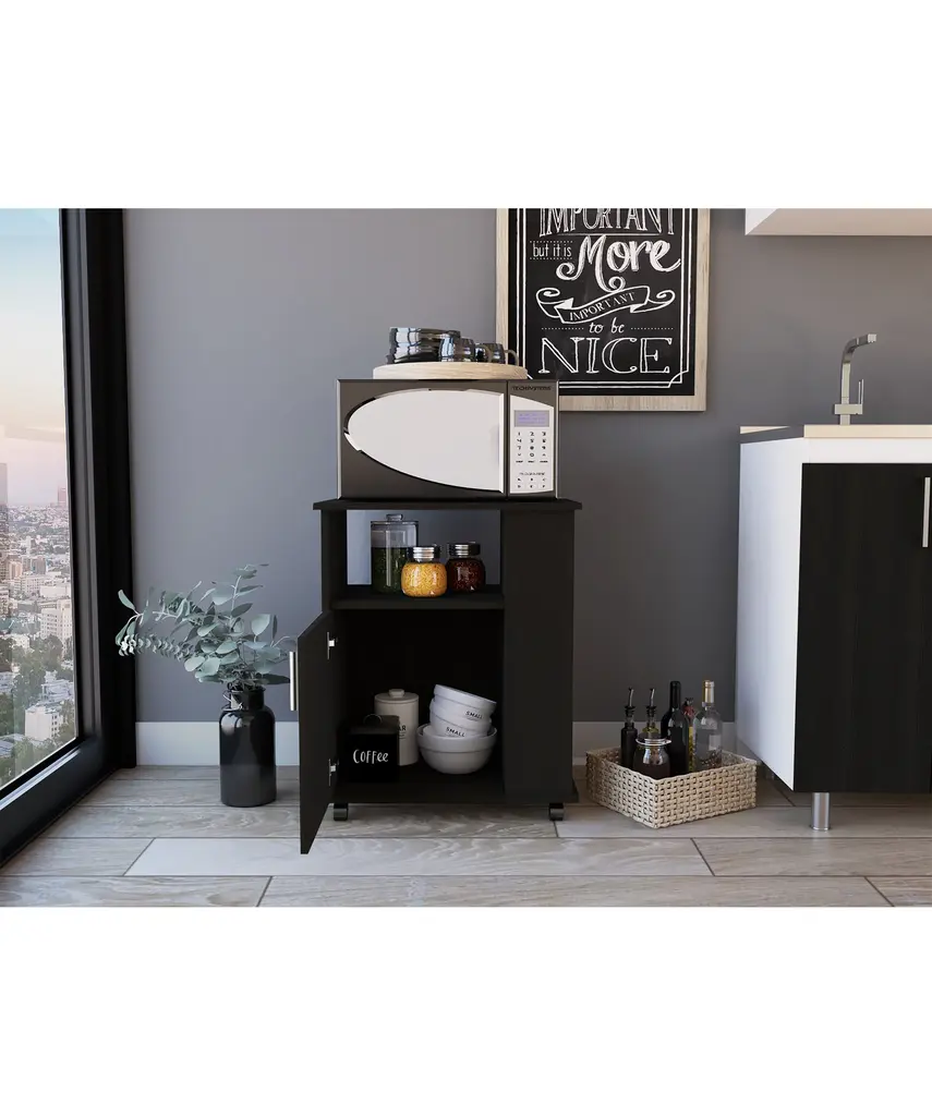 Depot Eshop Munich Black Lower Microwave Pantry Single Door Cabinet De-Mlw6198