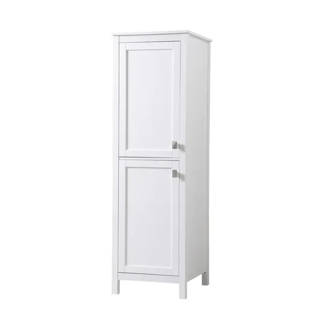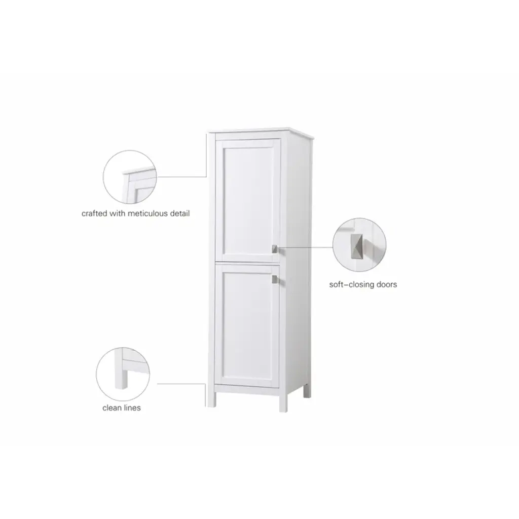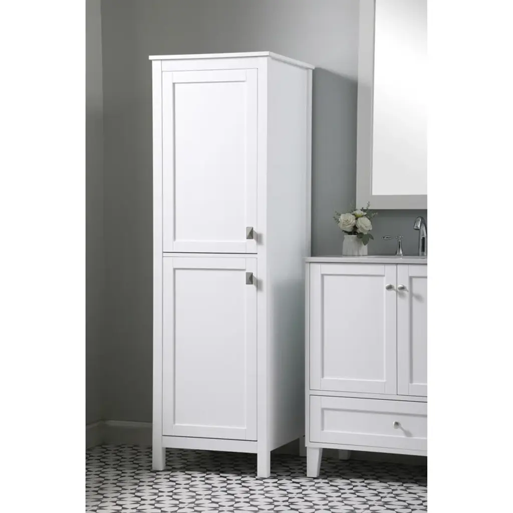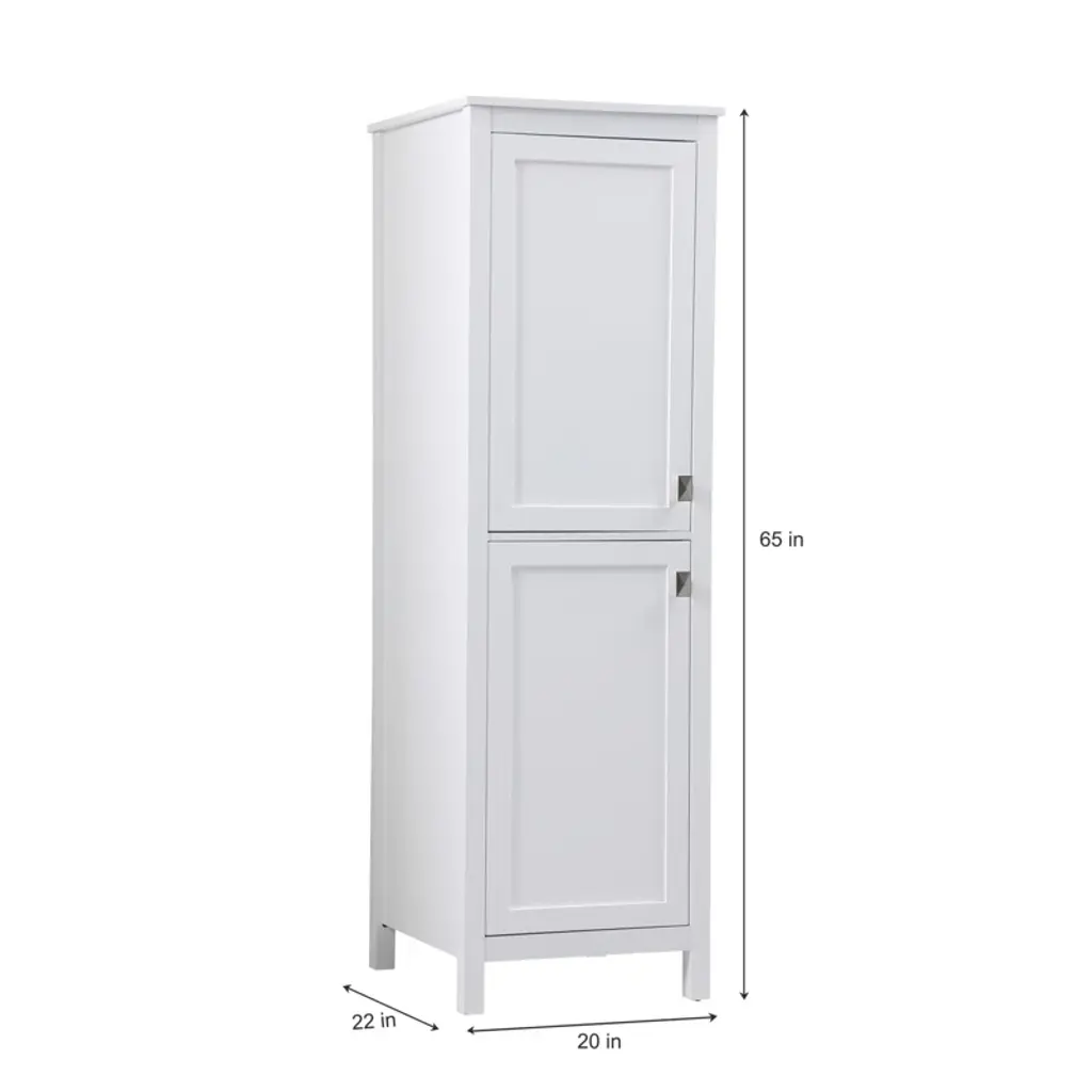Discover enhanced storage possibilities with our linen storage cabinet, a perfect blend of compact design and ample space, measuring 20" W x 65" H x 22" D. Crafted from durable engineered wood, this cabinet features a sophisticated design including upper and lower doors, crown molding, shaker legs, and zinc hardware, exuding timeless elegance. The top and bottom cabinets equipped with adjustable shelves provide substantial room for toiletries, towels, and more. Experience versatility, convenience, and tranquility with soft-close doors and two adjustable shelves. Arriving fully assembled, it streamlines setup.
