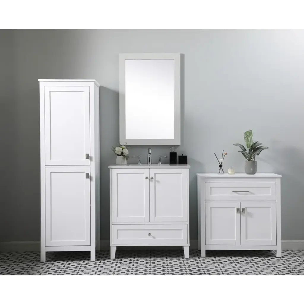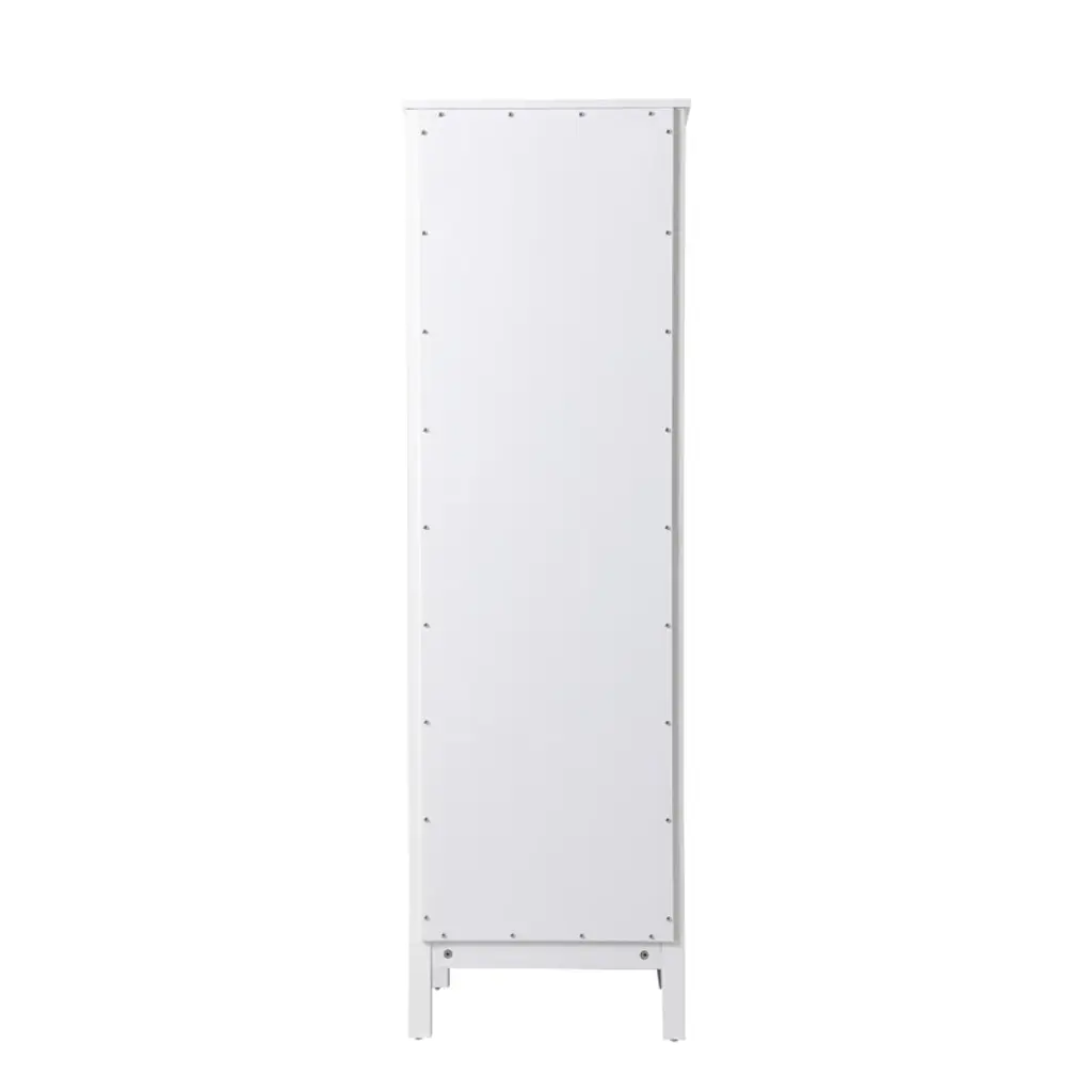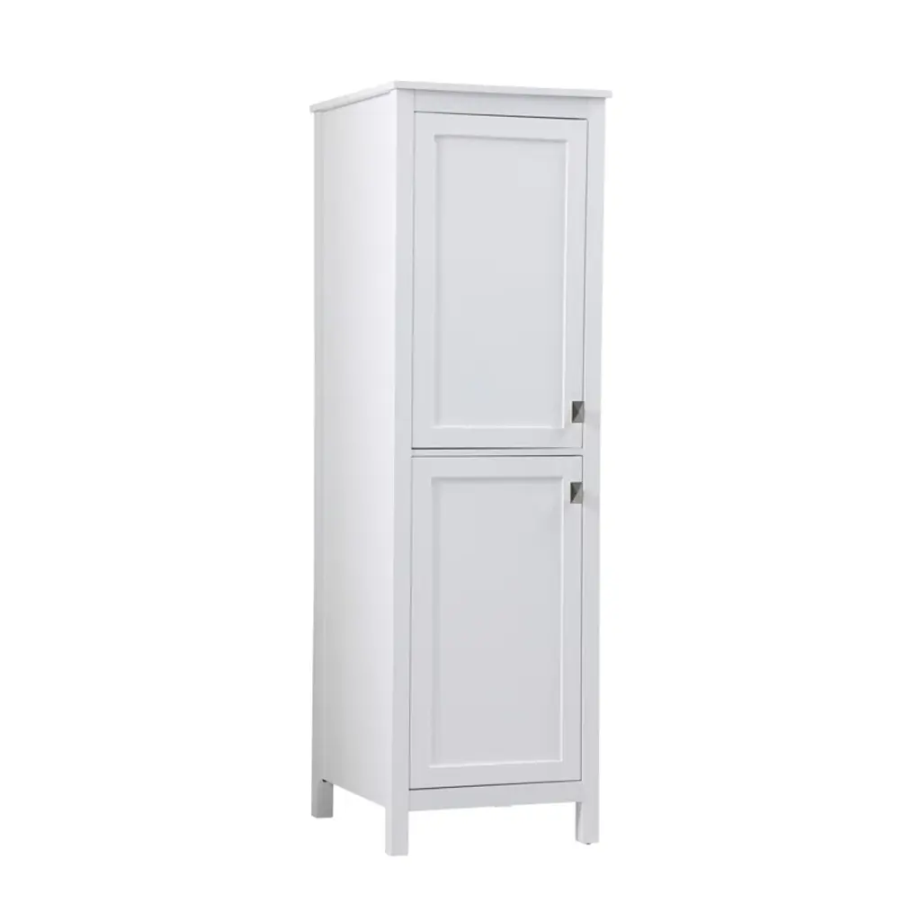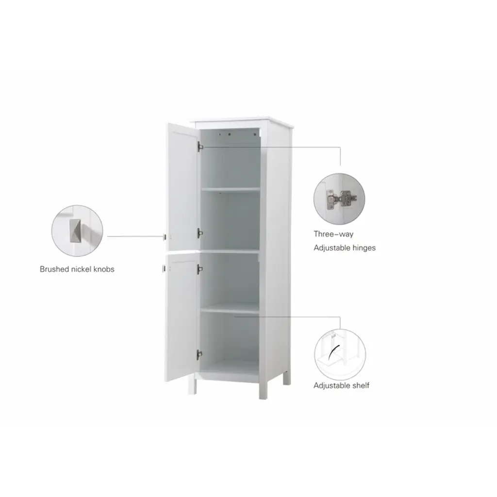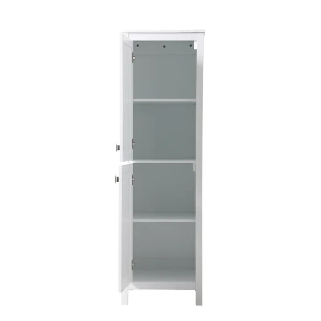 Discover enhanced storage possibilities with our linen storage cabinet, a perfect blend of compact design and ample space, measuring 20" W x 65" H x 22" D. Crafted from durable engineered wood, this cabinet features a sophisticated design including upper and lower doors, crown molding, shaker legs, and zinc hardware, exuding timeless elegance. The top and bottom cabinets equipped with adjustable shelves provide substantial room for toiletries, towels, and more. Experience versatility, convenience, and tranquility with soft-close doors and two adjustable shelves. Arriving fully assembled, it streamlines setup.