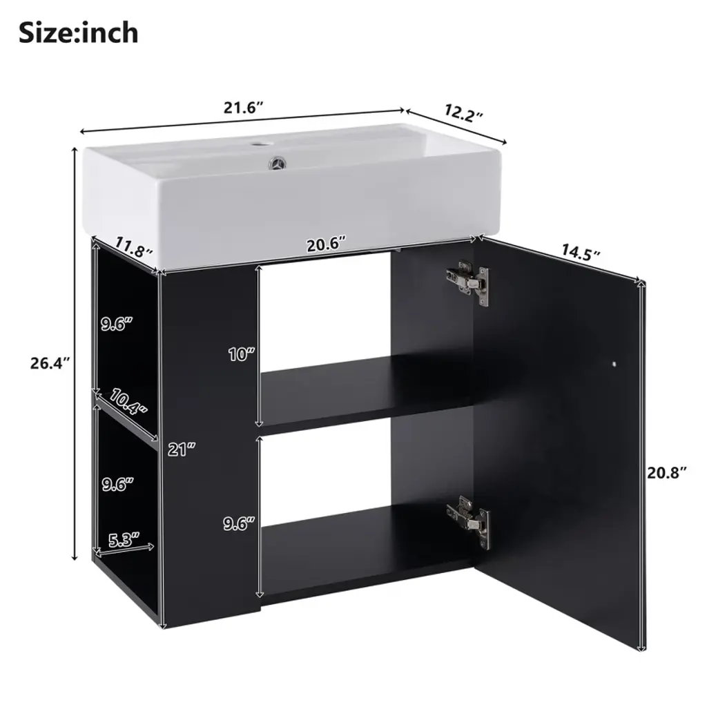 Dexmalle 21.6 Inch Modern Floating Black Bathroom Vanity With Left Side Storage