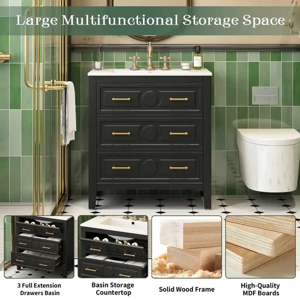 Carved craftsmanship and pure black cabinets present you with a feast of beautiful perspectives.Washing up in front of such a bathroom cabinet can wash away your fatigue from the day.