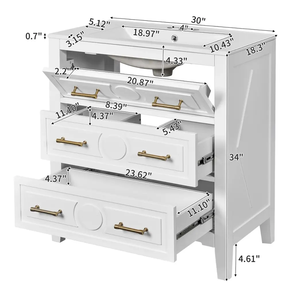 Dexmalle 30''solid Wood Frame Bathroom Storage Cabinet