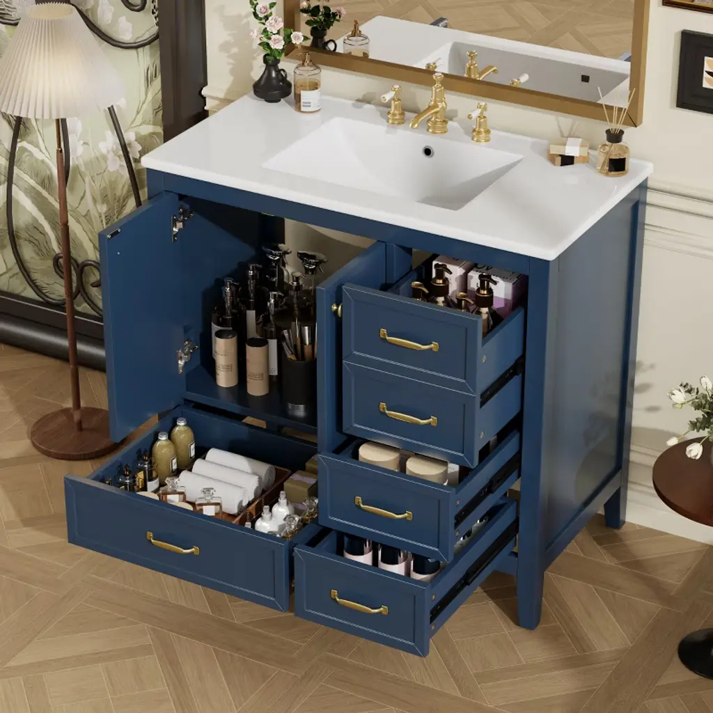 Dexmalle 36"blue Bathroom Cabinet With Soft-closing Door