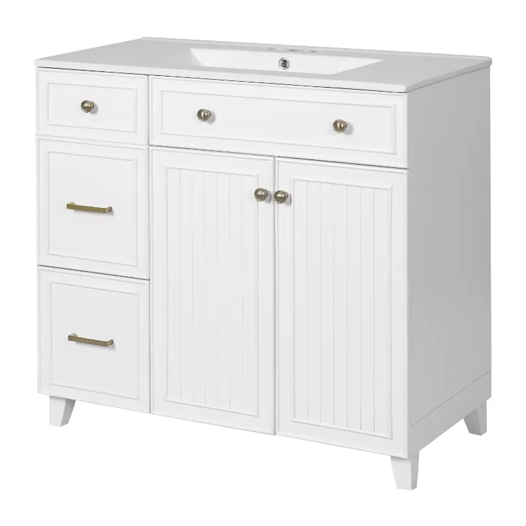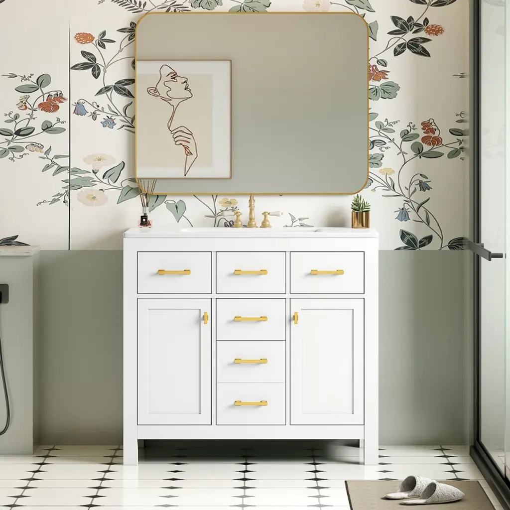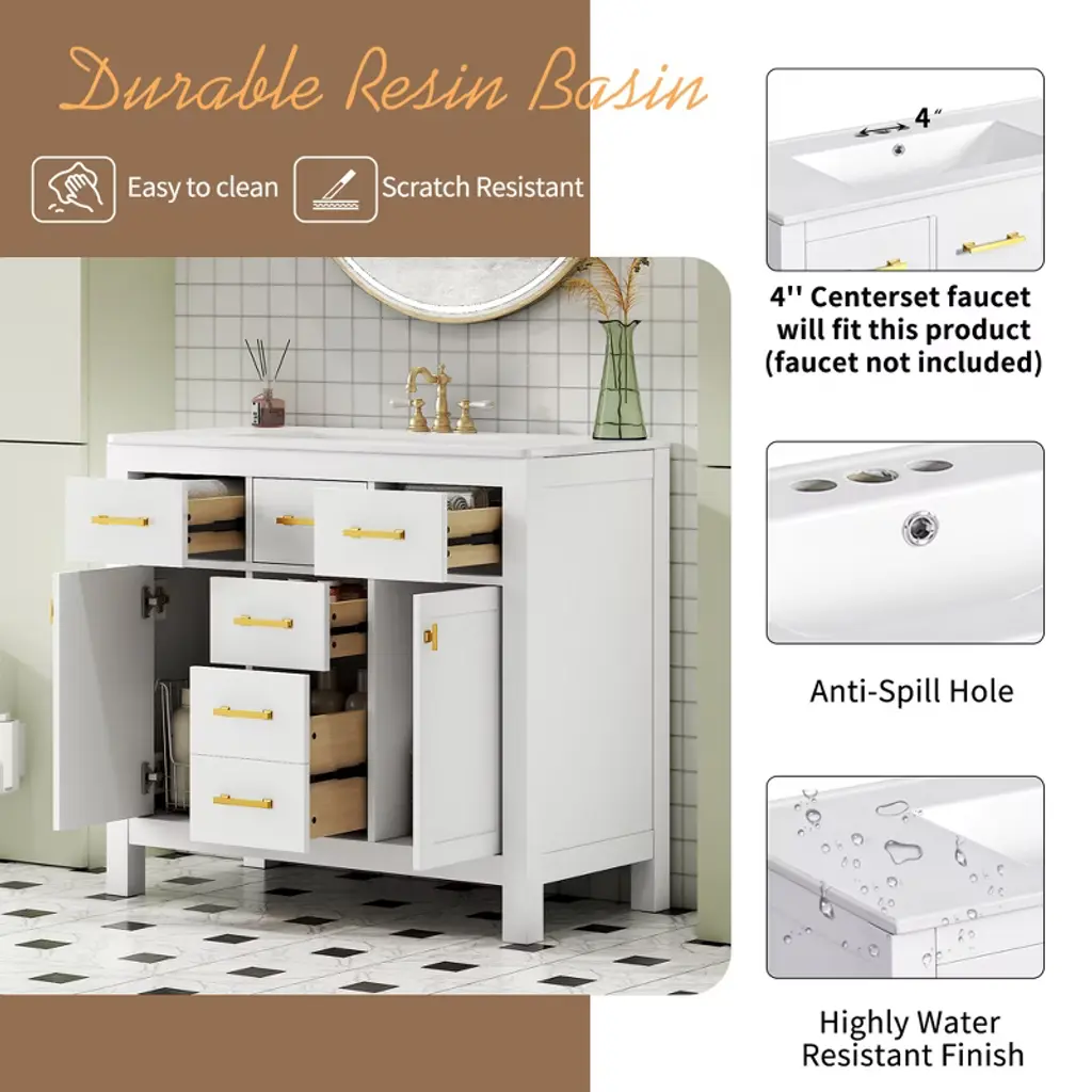 Dexmalle 36''modern Freestanding Single Bathroom Cabinet With 4 Drawers & 2 Cabinets