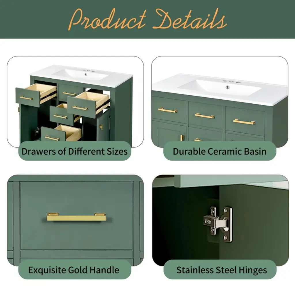 Dexmalle 36''modern Freestanding Single Bathroom Cabinet With 4 Drawers & 2 Cabinets