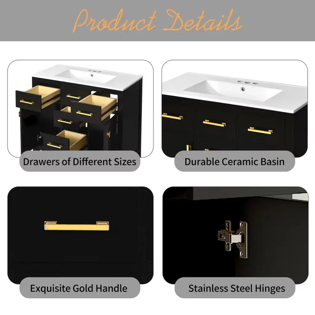 Dexmalle 36''modern Freestanding Single Bathroom Cabinet With 4 Drawers & 2 Cabinets