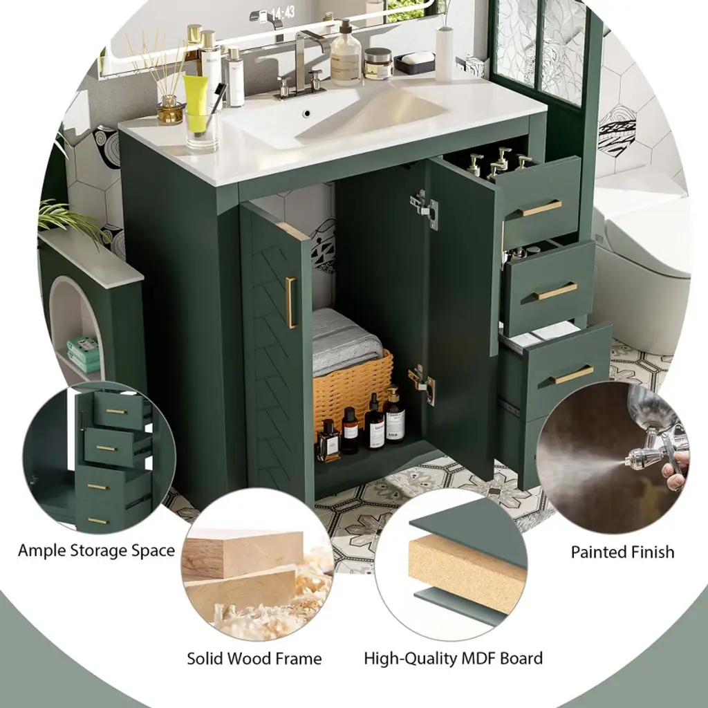The frame of this bathroom cabinet is made of solid wood, which makes the cabinet more sturdy and durable. The rest of the cabinet parts are made of high-quality MDF boards. The above features make this bathroom cabinet very durable, ensuring that you will not have to worry about choosing a high-quality bathroom cabinet again for a long time to come.