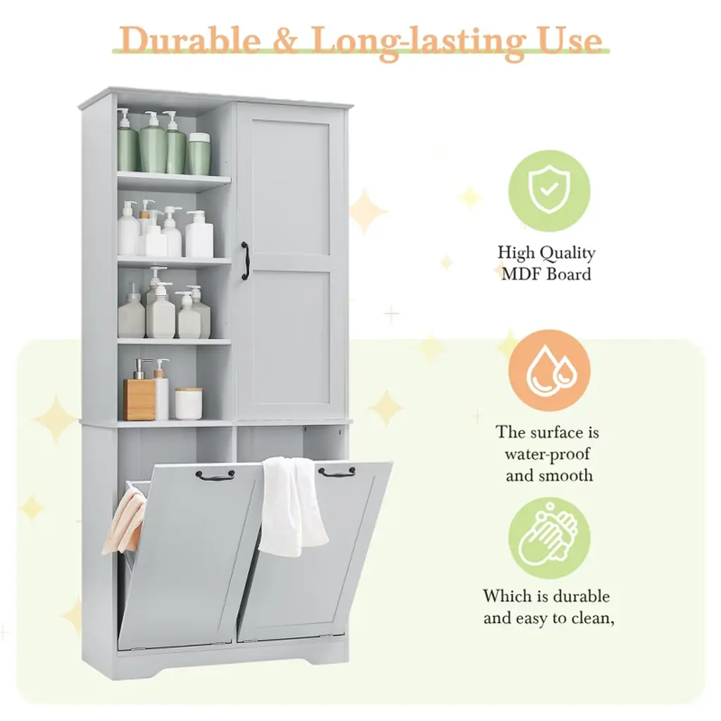 Dexmalle Bathroom Gray Storage Cabinet With Tilt-out Laundry Hamper