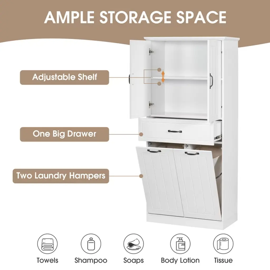 Dexmalle Bathroom Storage Cabinet With Two Laundry Baskets