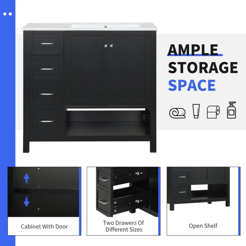 Dexmalle Black 36" Bathroom Vanity With Two Doors And Two Drawers