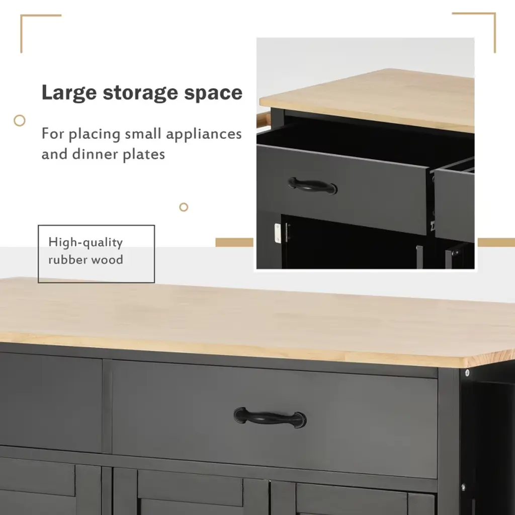 Dexmalle Black 54.3 Inch Width Kitchen Island Cart With 4 Door