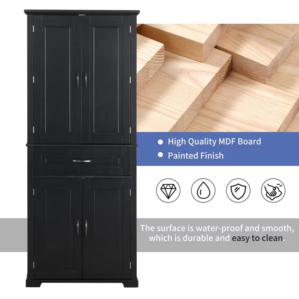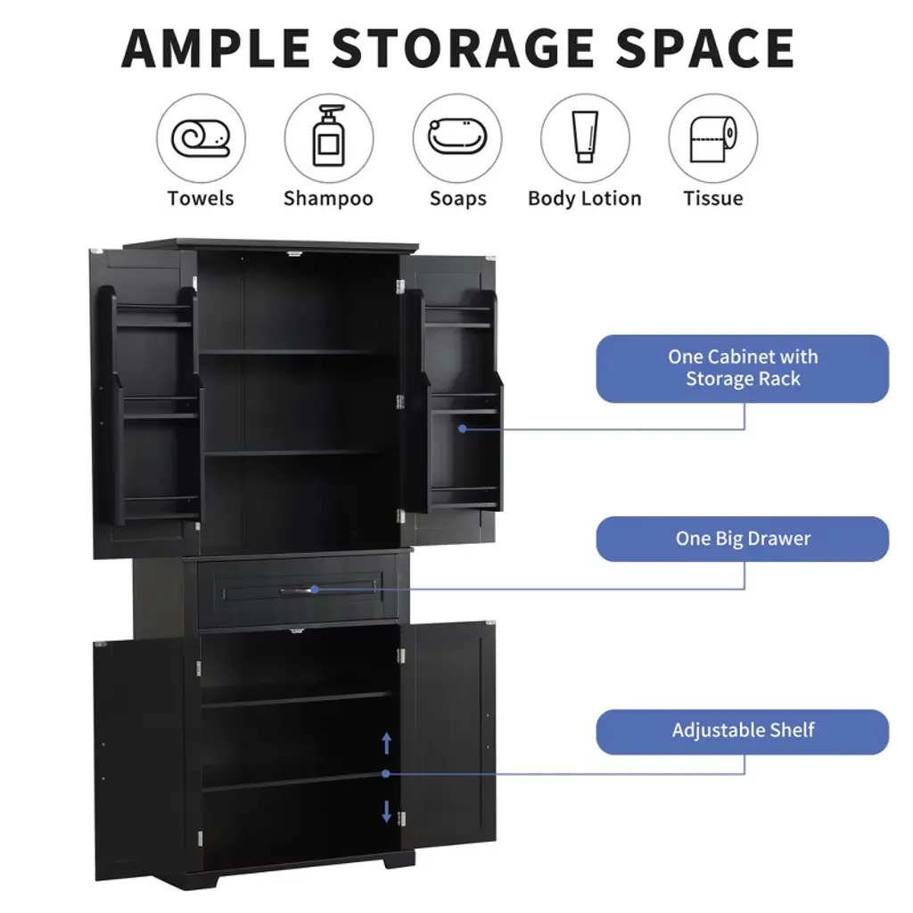 Dexmalle Black Multiple Storage Space Bathroom Storage Cabinet With Doors And Drawer