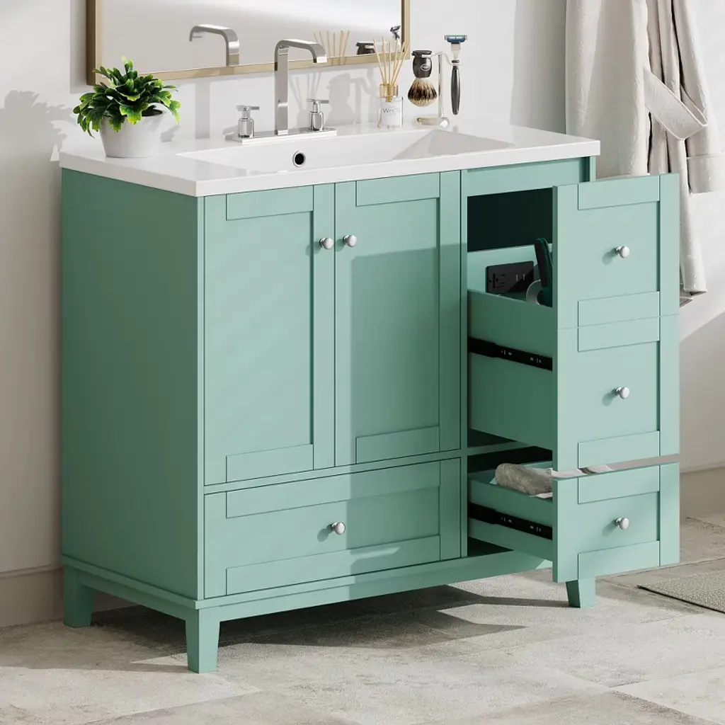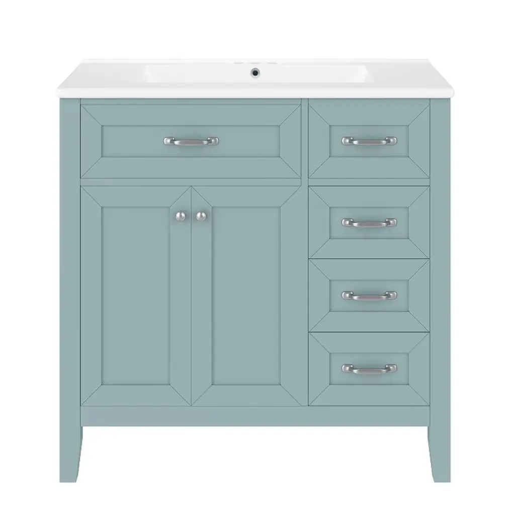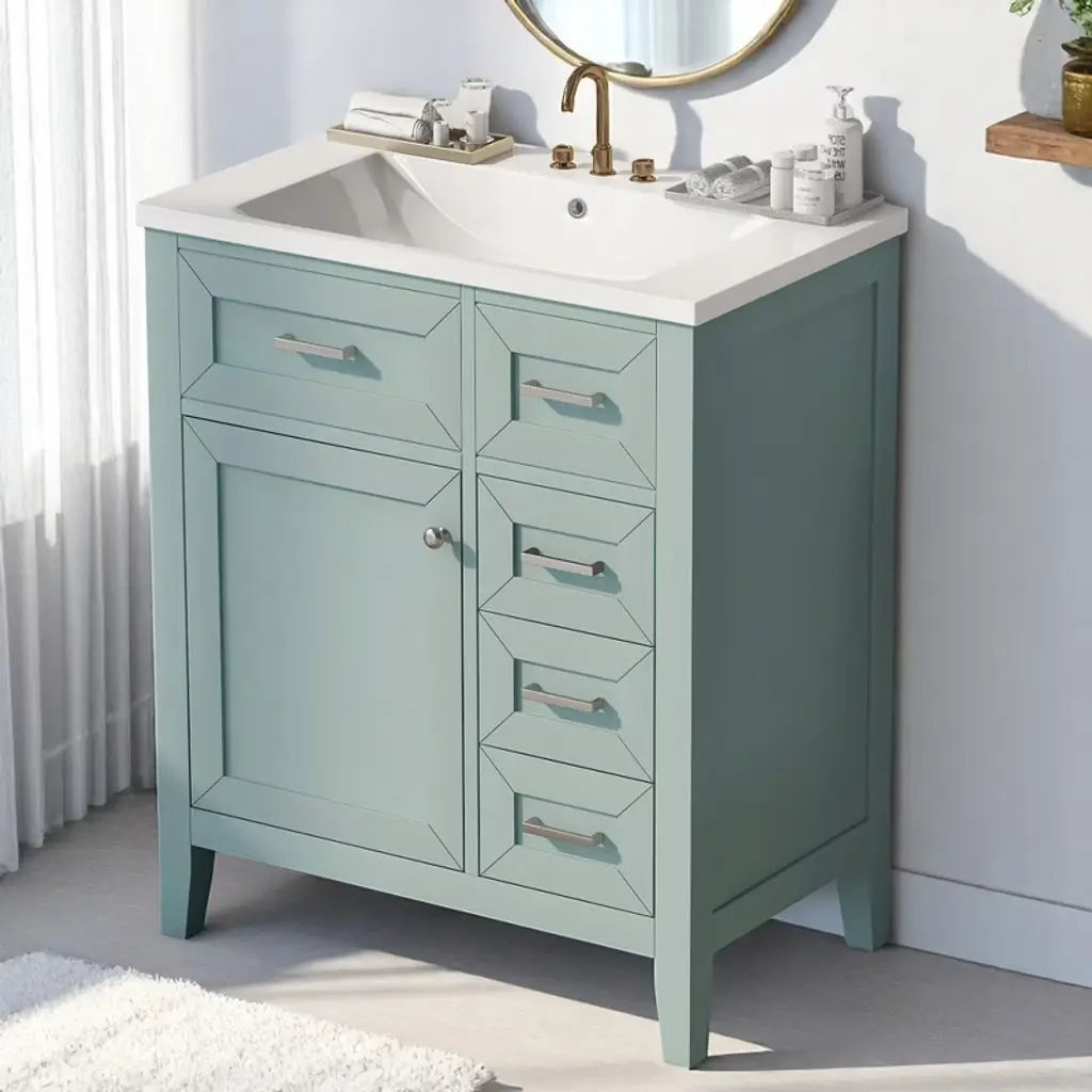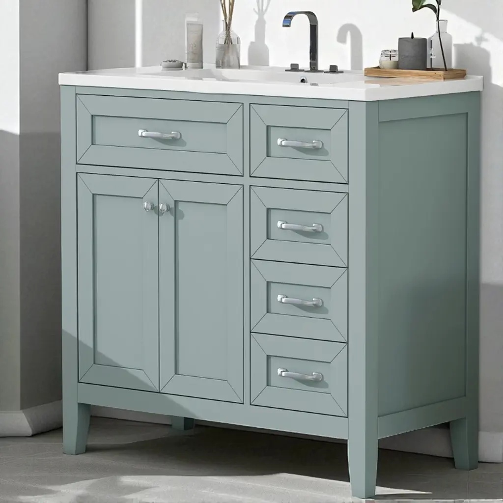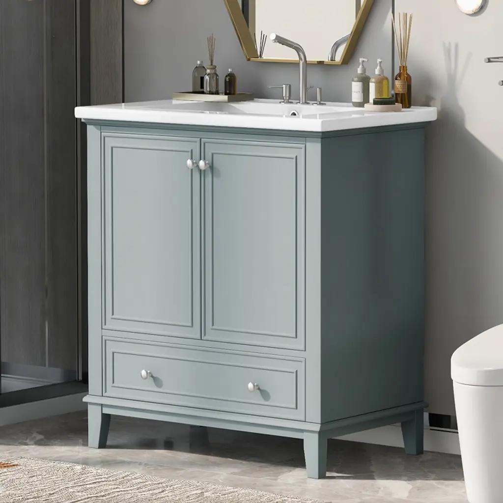 Dexmalle Green 30"multi-functional Bathroom Cabinet With Doors And Drawer
