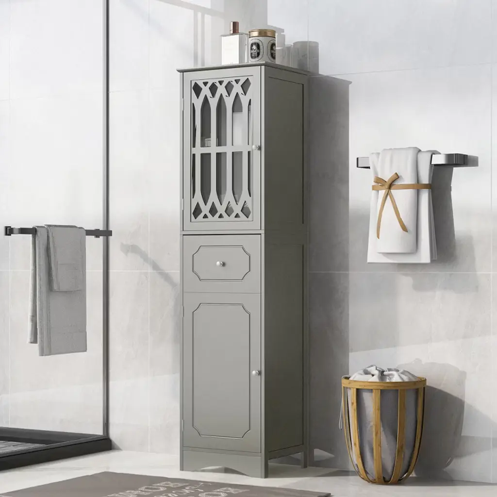 Dexmalle Grey Elegant Tall Bathroom Cabinet With Curve Door