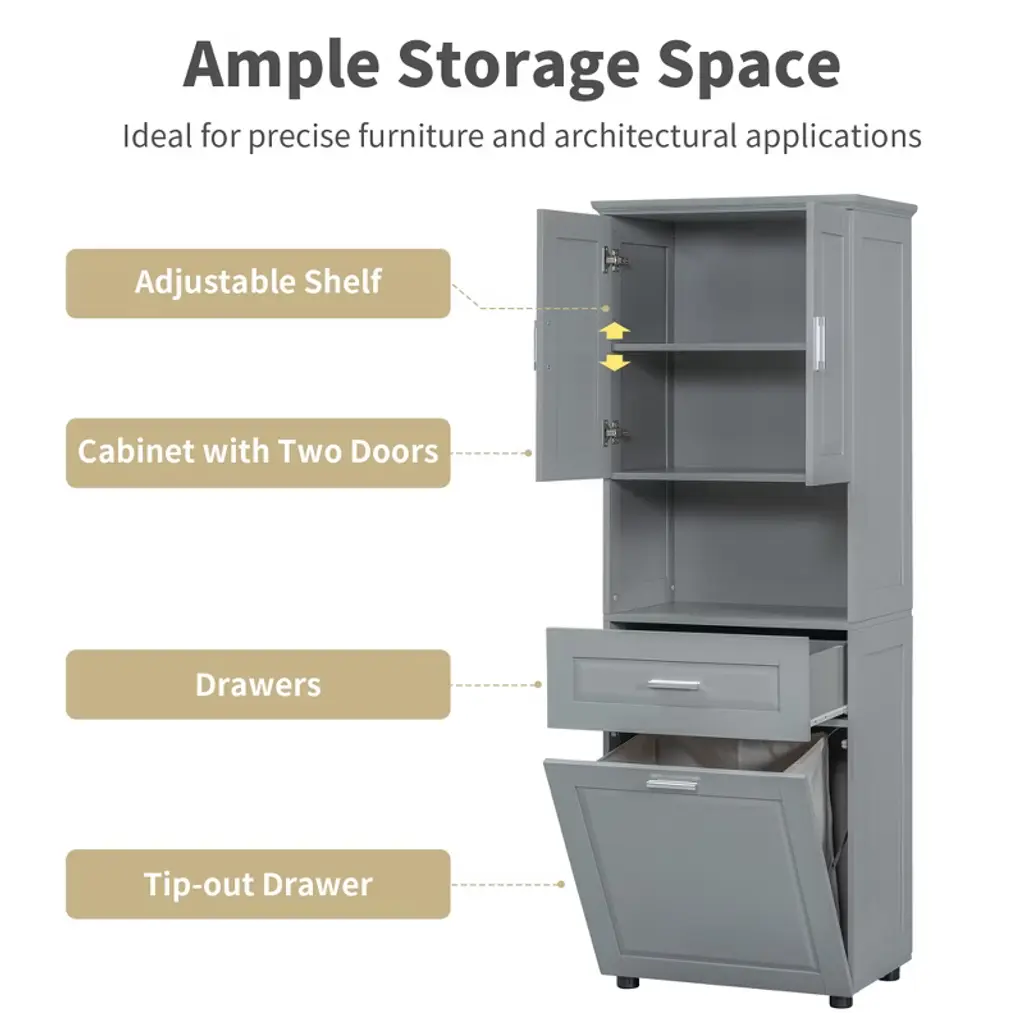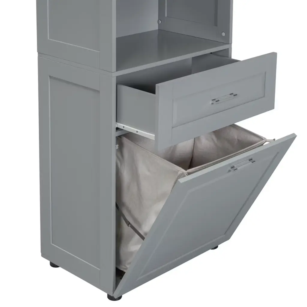 Dexmalle Grey Tall Bathroom Cabinet With Laundry Basket
