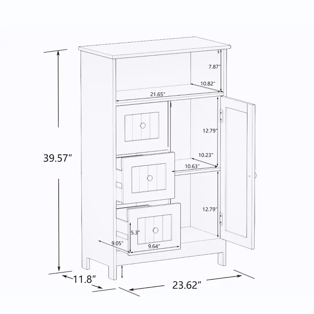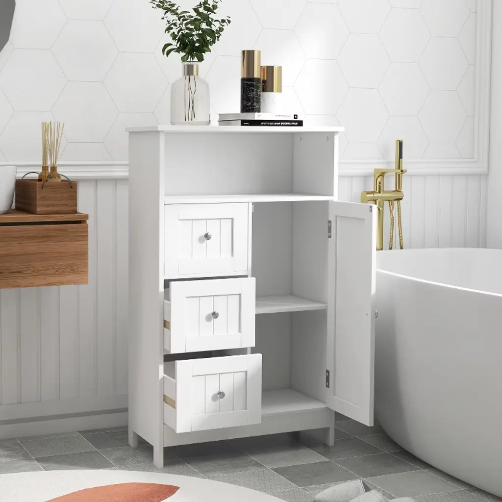 Dexmalle White Bathroom Standing Storage Cabinet With 3 Drawers And 1 Door