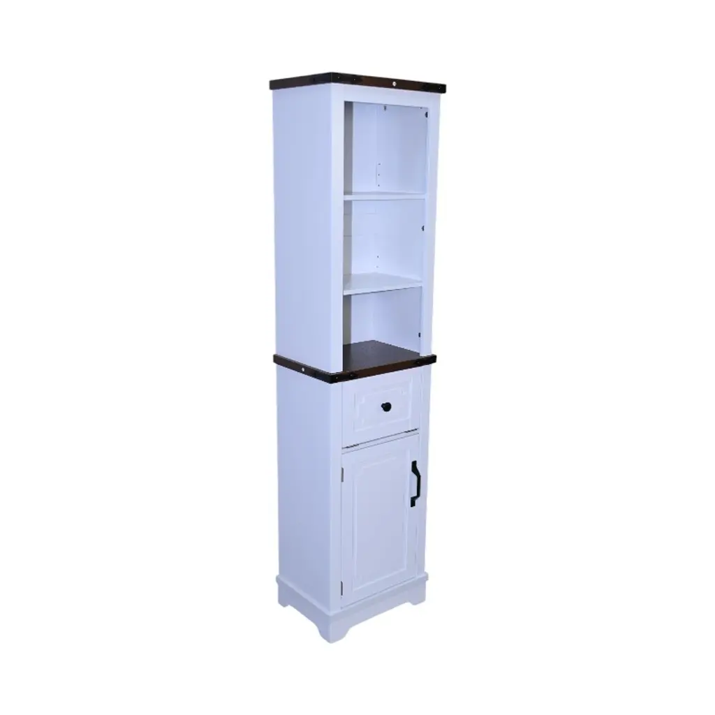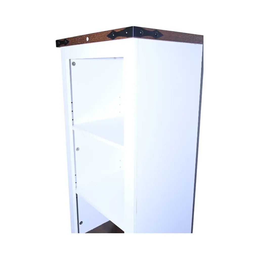This storage cabinet combines a fresh white body with a sleek black walnut - colored top, presenting a classic farmhouse look that adds warmth and style to any room. Whether placed in the bathroom, living room, or other areas of your home, its rustic charm will blend seamlessly with various decor themes, making it a visually appealing addition to your space.