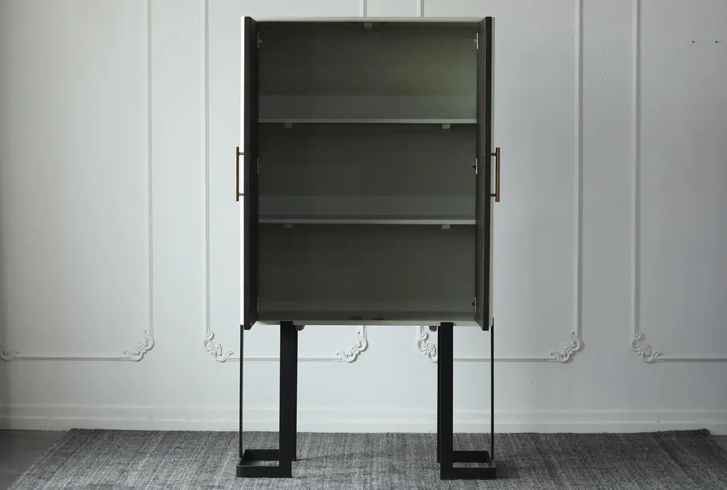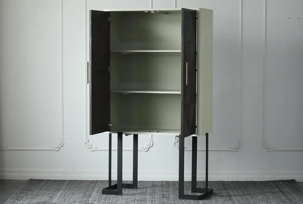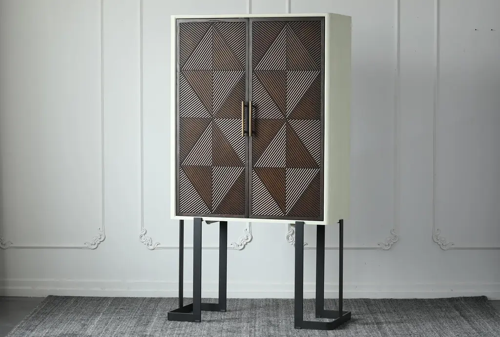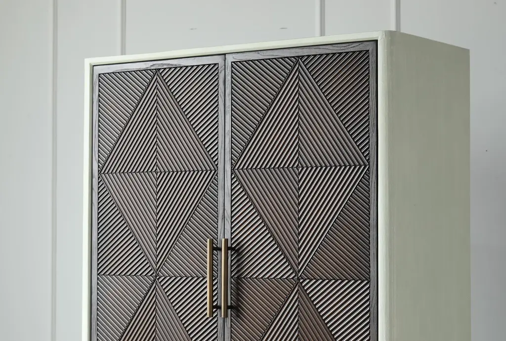 Diamond Pattern Reclaimed Pine + White Tall Cabinet