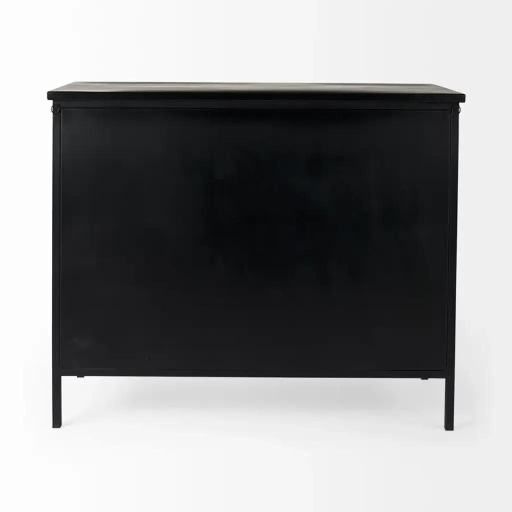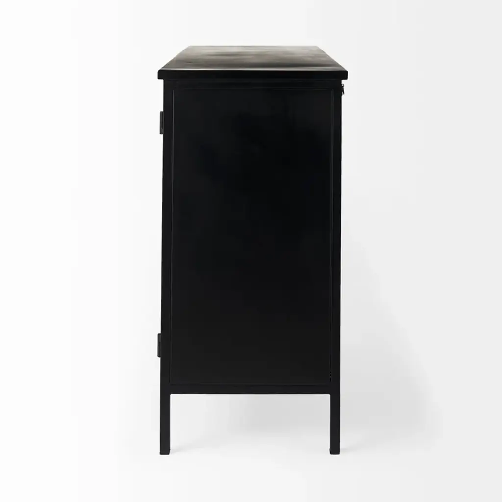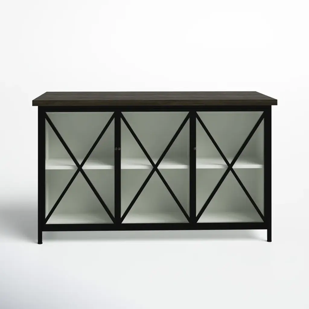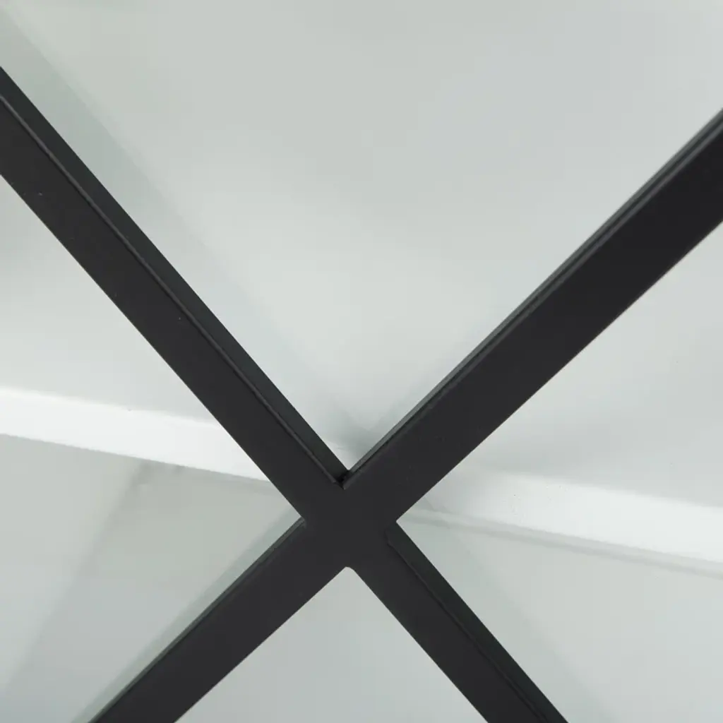 This 2-door accent cabinet has a clean, classic look and feel you'll love to show off just about anywhere. It's made from iron with a black finish and sits on four thin, tubular metal legs. The glass front doors are accented with metal Xs for added style and sophistication. We love the contrast of the two interior visible white shelves, especially when paired with the dark exterior. The best part? It's delivered fully assembled, so all you have to do when it arrives is find the right spot for it.