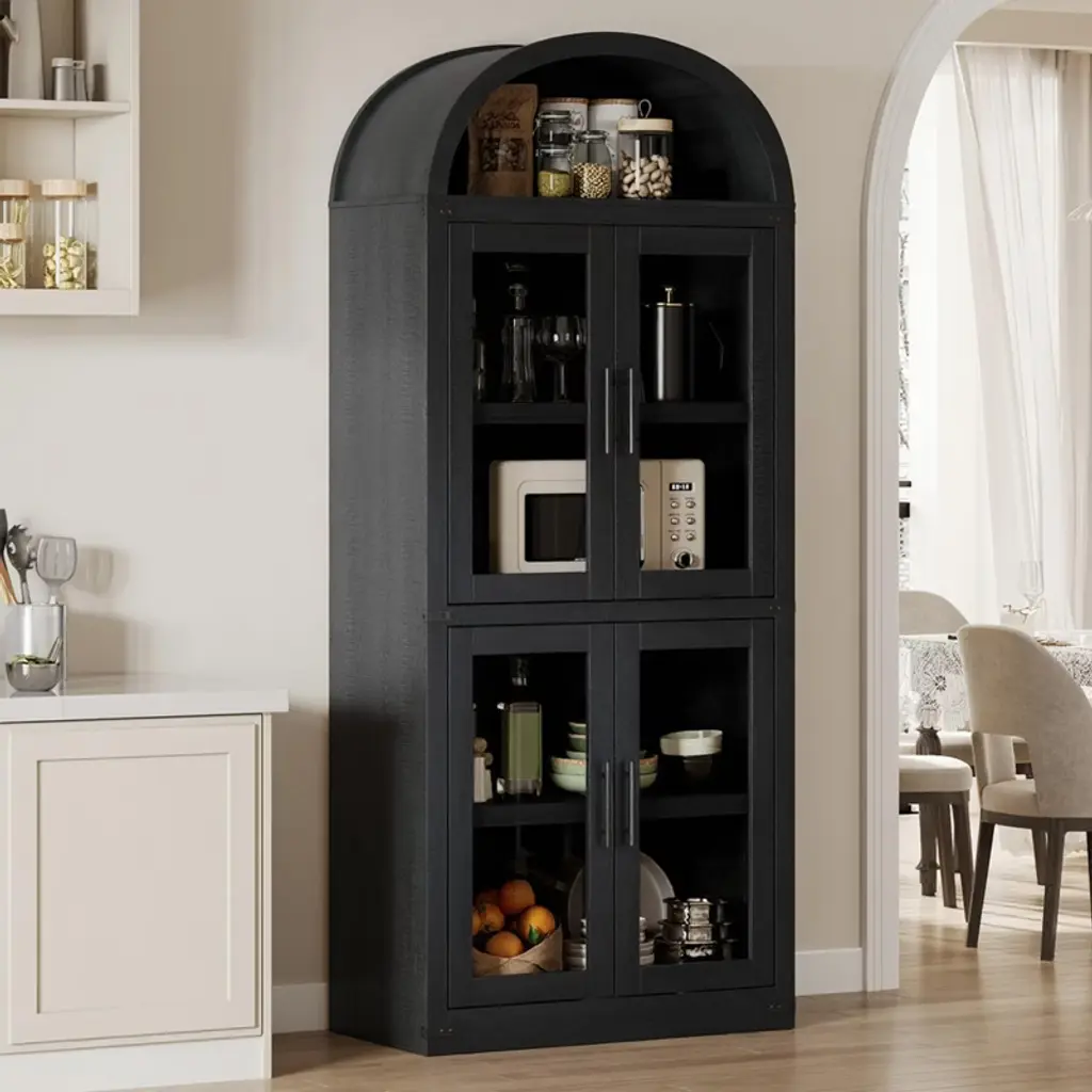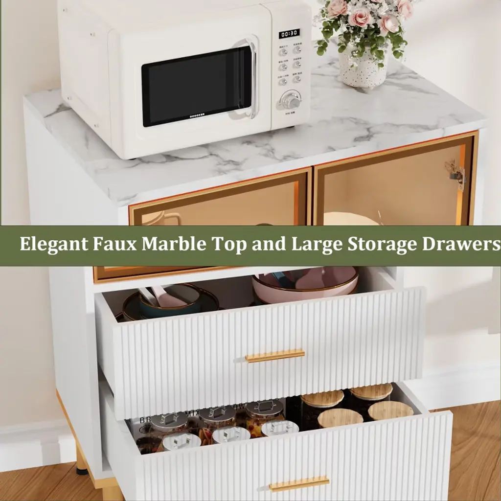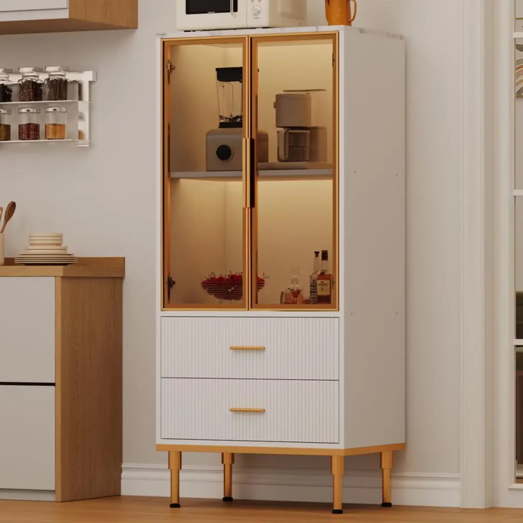 Display Cabinet with Glass Door, Modern Fluted Storage Cabinet with 2 Drawers for Living Room and OfficeProduct Description:1. Elegant Contemporary DesignEnhance your home decor with this beautifully crafted display cabinet that blends modern aesthetics with timeless elegance. The stunning tea-colored glass is elegantly framed in luxurious gold alloy, creating a striking visual appeal. The textured fluted drawer fronts and distinctive trapezoidal gold alloy feet add sophisticated detail, making this piece a stylish focal point in any room.2. Versatile Display and StorageThis cabinet offers the perfect combination of display and concealed storage. The spacious glass-door compartment features an adjustable shelf, ideal for showcasing collectibles, books, or decorative items. Below, two deep drawers provide ample space to organize smaller essentials, documents, or kitchen supplies, keeping clutter out of sight while maintaining easy access.3. Durable and Easy-Clean SurfacesCrafted from high-quality MDF with a polished, wear-resistant finish, this cabinet is built to withstand daily use while retaining its pristine appearance. The smooth white surface is effortless to maintain¡ªsimply wipe with a damp cloth to keep it looking fresh and new, making it both a practical and long-lasting addition to your home.4. Space-Saving Compact FootprintDesigned to fit seamlessly into various settings, this cabinet features compact dimensions of 15.7"W x 23.6"D x 54.8"H. Its versatile size allows it to serve as a elegant display cabinet in the living room, a functional storage solution in the office, or a stylish kitchen pantry for organizing essentials without occupying excessive floor space.5. Simple and Efficient AssemblyEnjoy a straightforward setup process with clearly labeled parts and detailed step-by-step instructions. All necessary hardware is included, enabling you to assemble your cabinet quickly and without complications. In no time, you can transform your space with this elegant and highly functional storage piece.Specifications:? Material: Engineered Wood (MDF), Gold Alloy Accents? Color: White with Gold Accents? Style: Modern? Configuration: 1 Glass Door Display Section, 2 Drawers? Special Features: Adjustable Shelf, Wear-Resistant Finish? Mounting Type: Freestanding? Overall Dimensions: 15.7"W x 23.6"D x 54.8"H