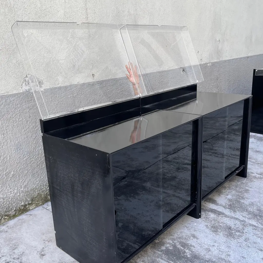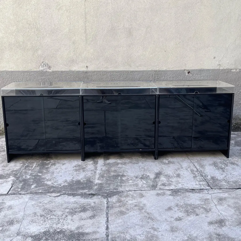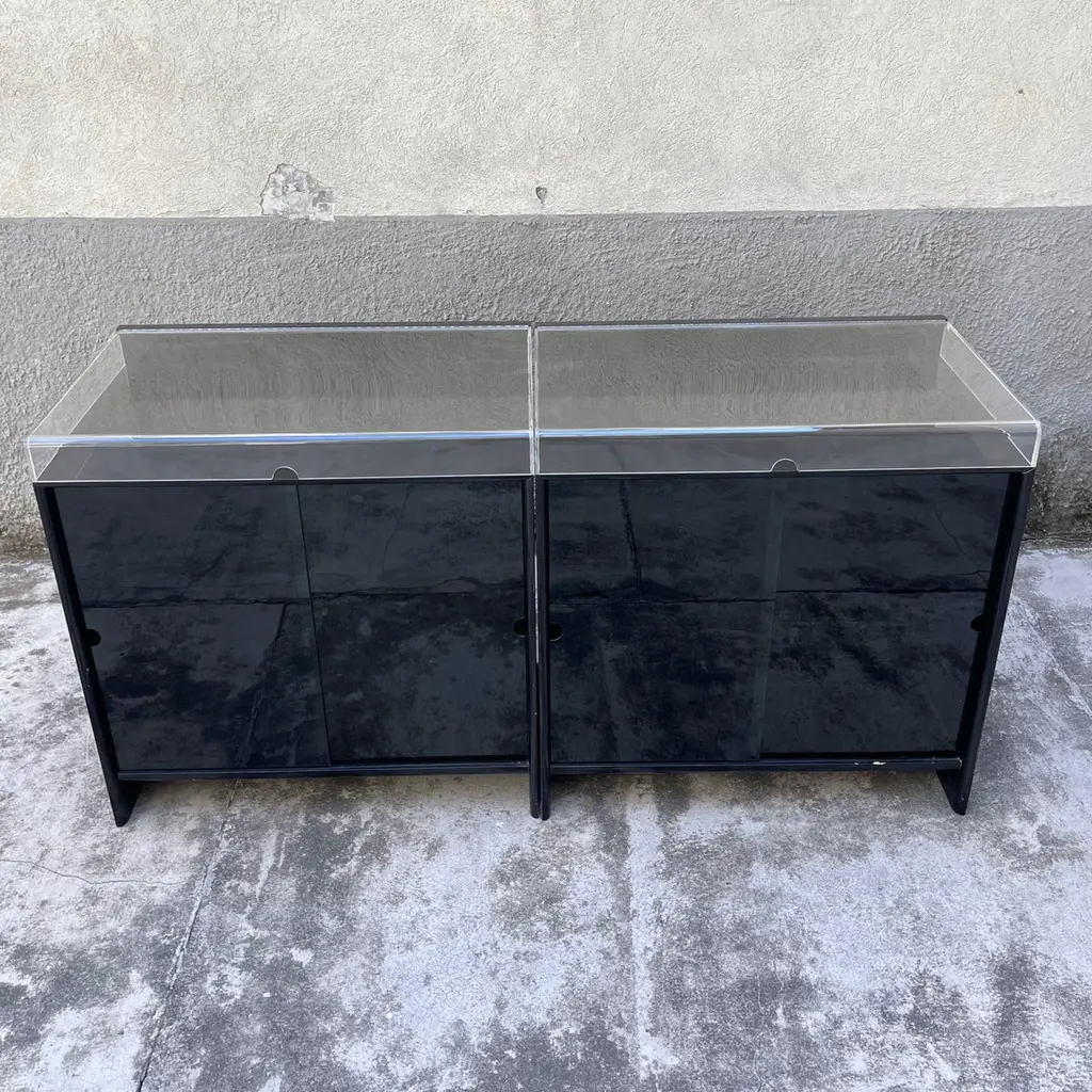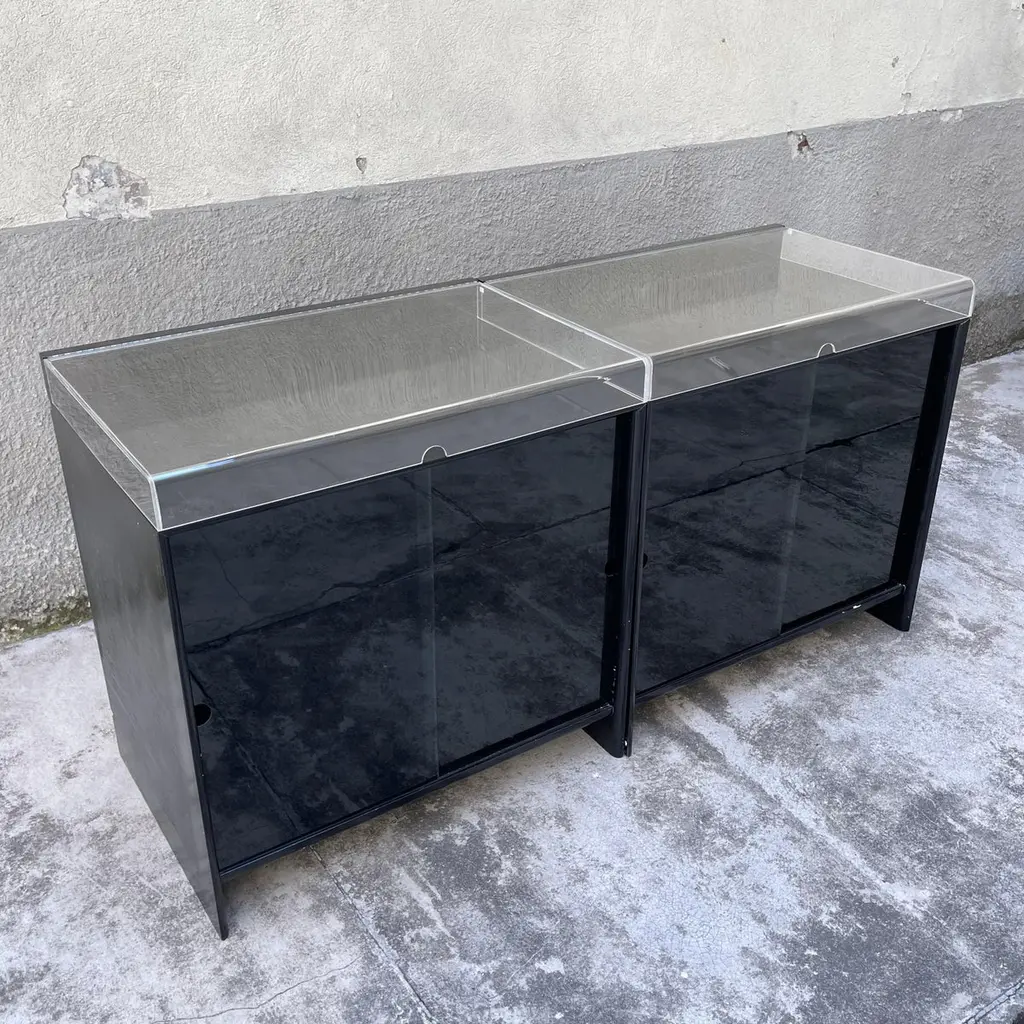 Display Cabinets In Black Lacquered Wood And Top In Acrylic Glass, Italy, 1970s
