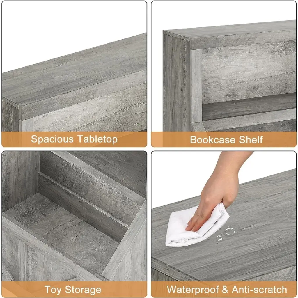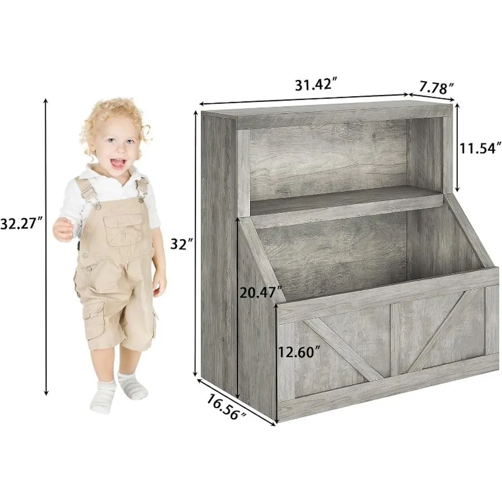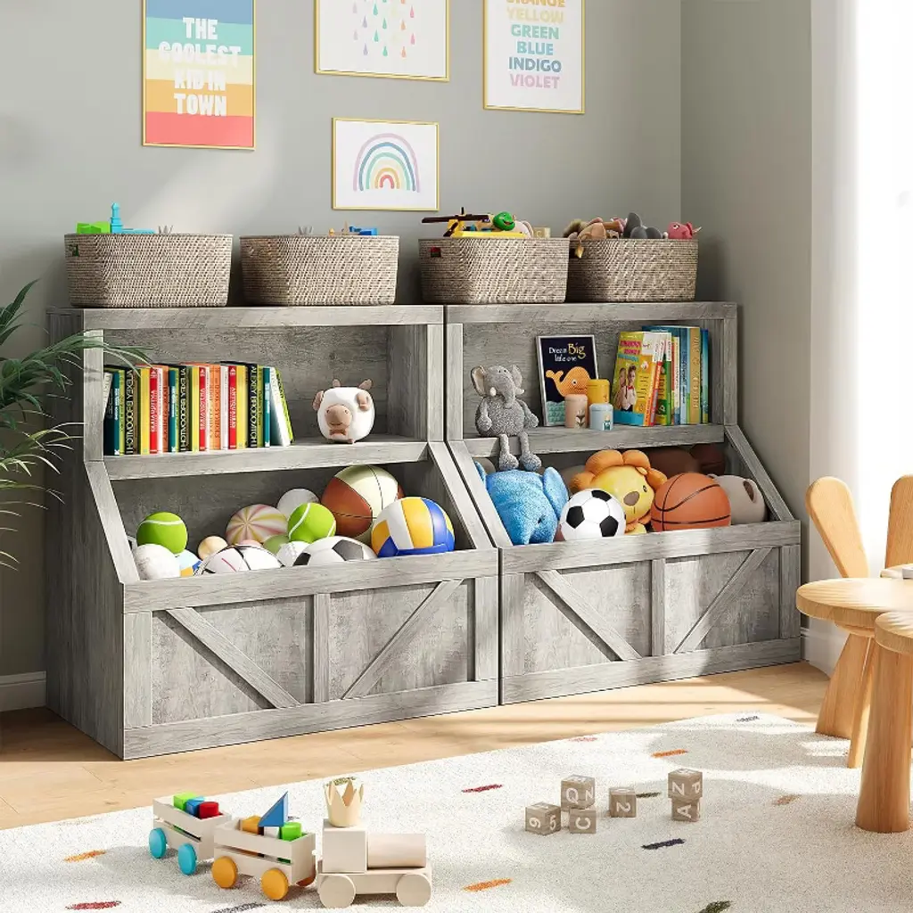 Dobleepy 2-tier Wooden Kids Bookshelf With Cubby Storage, Durable Toy Organizer For Playroom, Nursery, Bedroom, Grey