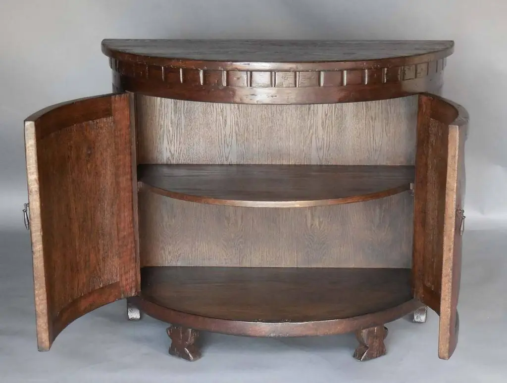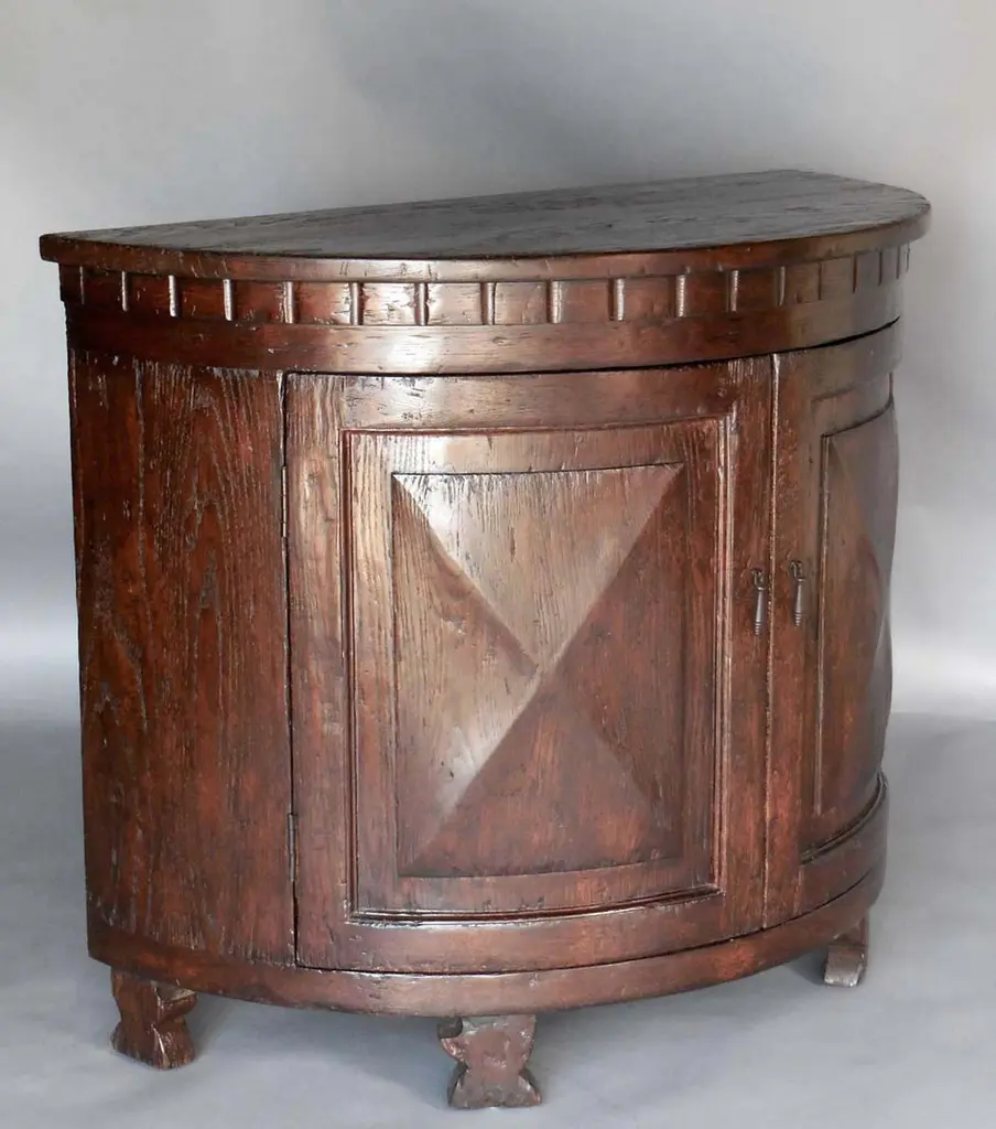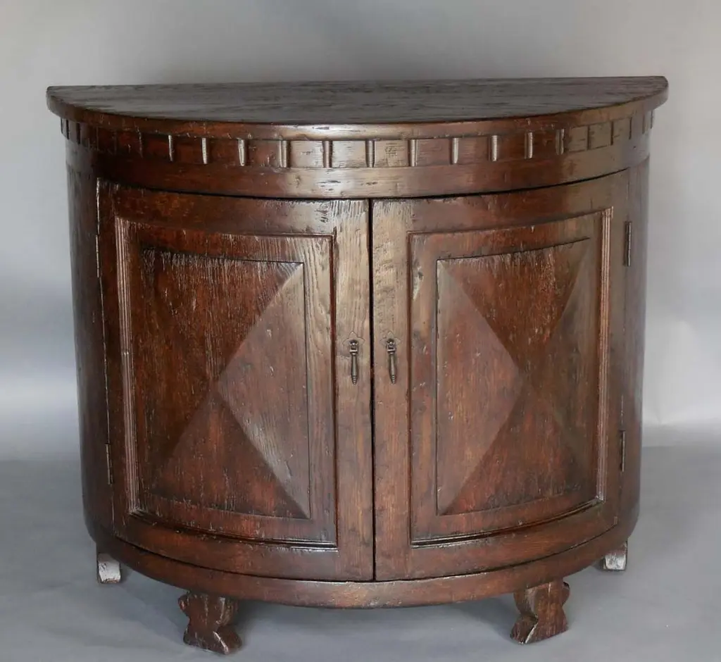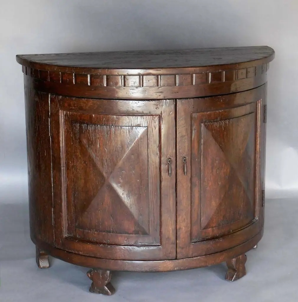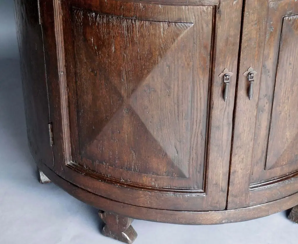 Dos Gallos Custom Oak Wood Demilune Cabinet