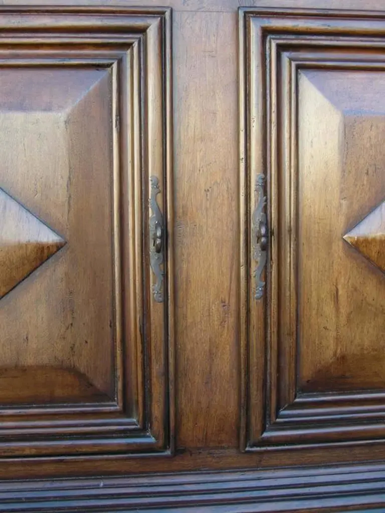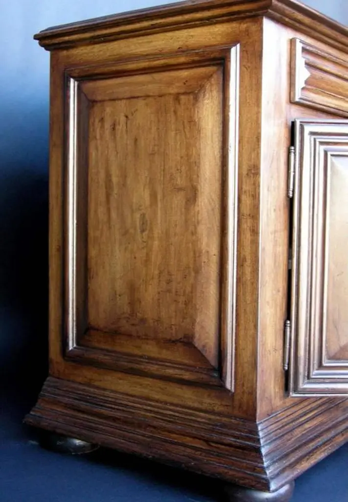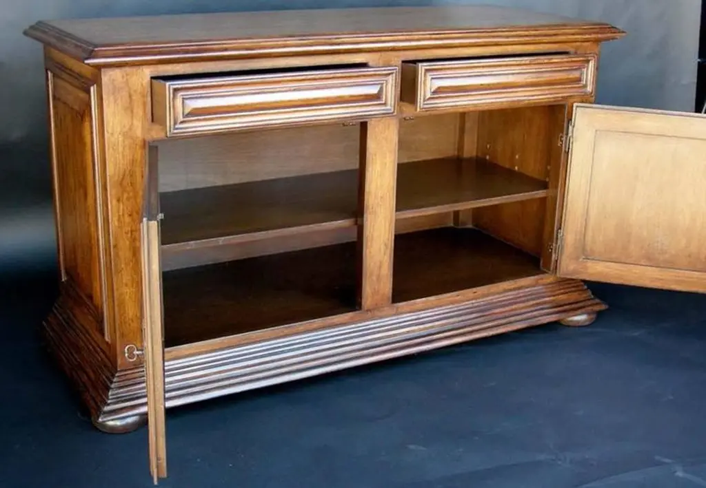Dos Gallos Custom Walnut Wood Bun Foot Cabinet With Doors And Drawers