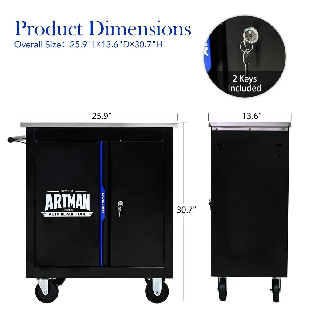 Douable-Door Clapboard Multi-Function Tool Cart - Black