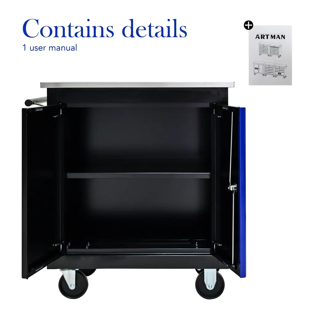 This assembly trolley has 4 steering wheels, 2 of which with parking brakes, so you can move the trolley freely in the garage, but also stop in one place.The storage surface provides additional space for storing and arranging tools you often need.The robust and powder-coated steel construction is used for high wear resistance.This is a set of cabinets, can use a round hook at the bottom of the table to connect another tool car, thus forming a combination.