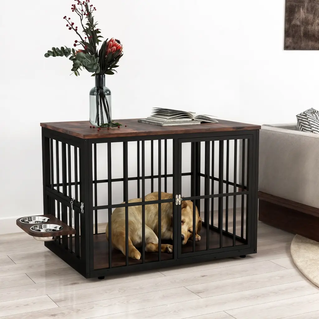 Experience the perfect blend of functionality and style with Dog Crate Furniture. This versatile piece isn't just a crate; it effortlessly transforms into a TV stand, side cabinet, or storage cabinet to fit your space and lifestyle. Our unique design features a rotatable feeding bowl, making meal times convenient and tidy. The sturdy, detachable iron frame ensures durability and chew-resistance, promising to accompany your dog through their growing stages. Doubling as a TV stand or side cabinet, this crate saves space while providing a comfortable haven for your pet. Each crate boasts three doors for easy pet access and cleaning. Ideal for households with one or two dogs, this dog crate furniture ensures freedom and comfort for your furry friends. Features