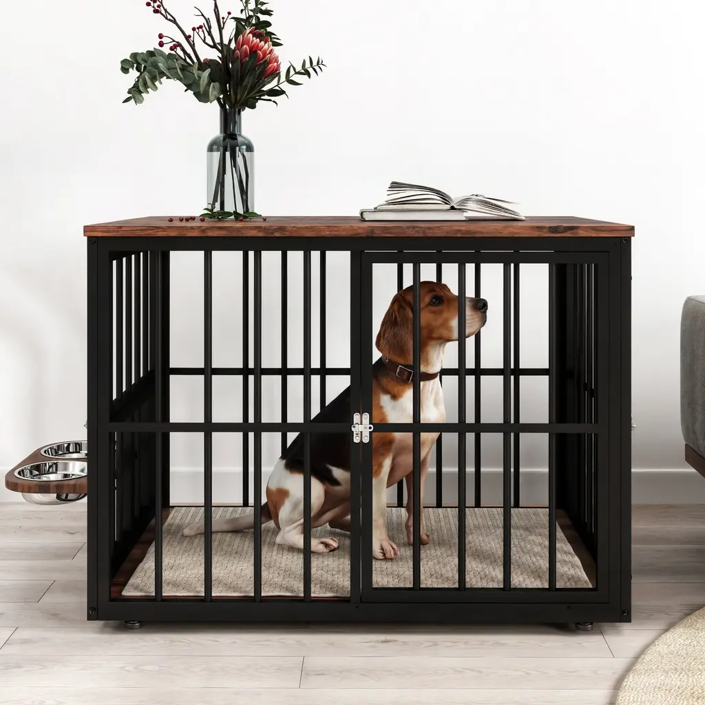 Experience the perfect blend of functionality and style with Dog Crate Furniture. This versatile piece isn't just a crate; it effortlessly transforms into a TV stand, side cabinet, or storage cabinet to fit your space and lifestyle. Our unique design features a rotatable feeding bowl, making meal times convenient and tidy. The sturdy, detachable iron frame ensures durability and chew-resistance, promising to accompany your dog through their growing stages. Doubling as a TV stand or side cabinet, this crate saves space while providing a comfortable haven for your pet. Each crate boasts three doors for easy pet access and cleaning. Ideal for households with one or two dogs, this dog crate furniture ensures freedom and comfort for your furry friends. Features