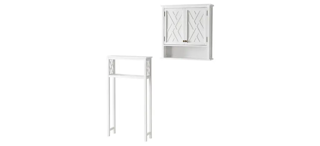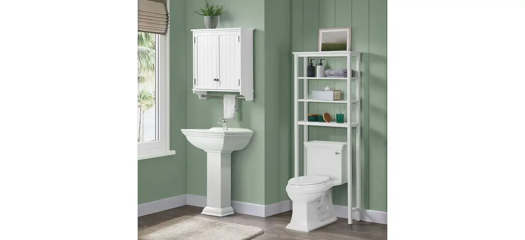 The classic Dover 2-pc. Over-Toilet Organizer w/ Open Shelves and Cabinet brings space-saving storage to your bathroom, and complements most bathroom d_cor. Designed for both style and functionality, with plenty of space to keep toiletries, folded towels, and decorative accessories.