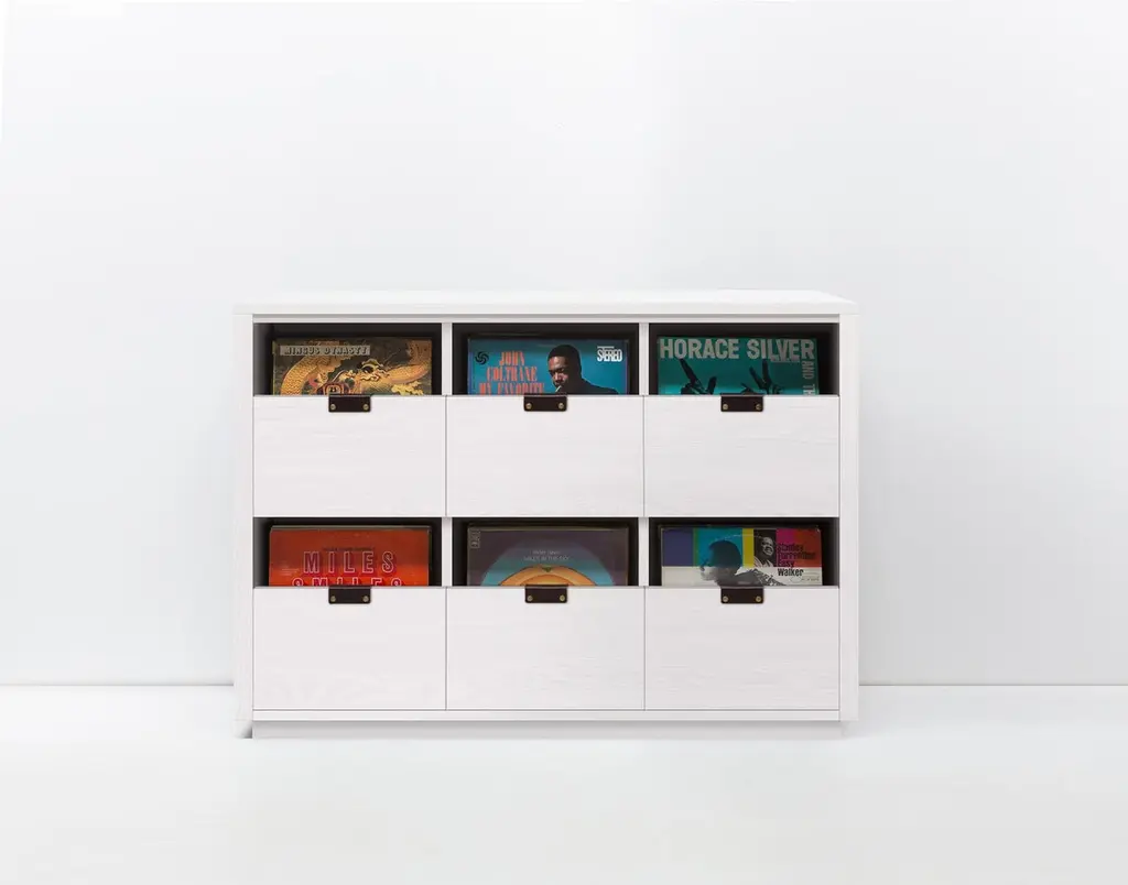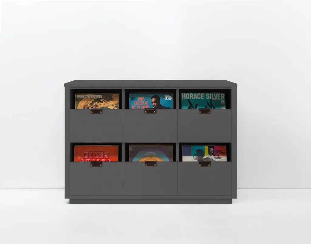 Our Dovetail Vinyl Storage Cabinets utilize a “file drawer” approach to store LPs and allow you to easily flip through an entire record collection while enjoying a visual display of record cover art across the front of the cabinet. The design incorporates many of the same details found in our Dovetail Record Crates into a cabinet that can be customized for your storage needs. Each drawer is constructed with Symbol’s exposed English dovetail joinery, vegetable tanned leather handles with solid brass hardware, and utilize heavy-duty full extension soft-close under-mount drawer slides. All of our cabinets are produced in the United States using sustainably harvested solid hardwoods for both strength and beauty.Features:- Store up to 180 LPs- Dovetail drawer boxes with full-extension soft-close undermount drawer slides- Vegetable tanned leather handles with solid brass hardware- Solid wood construction