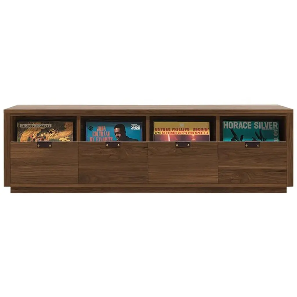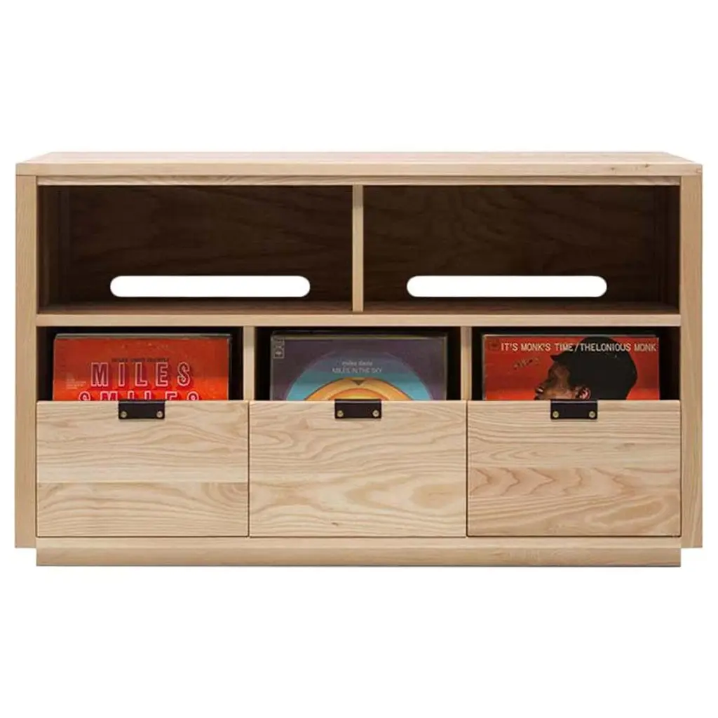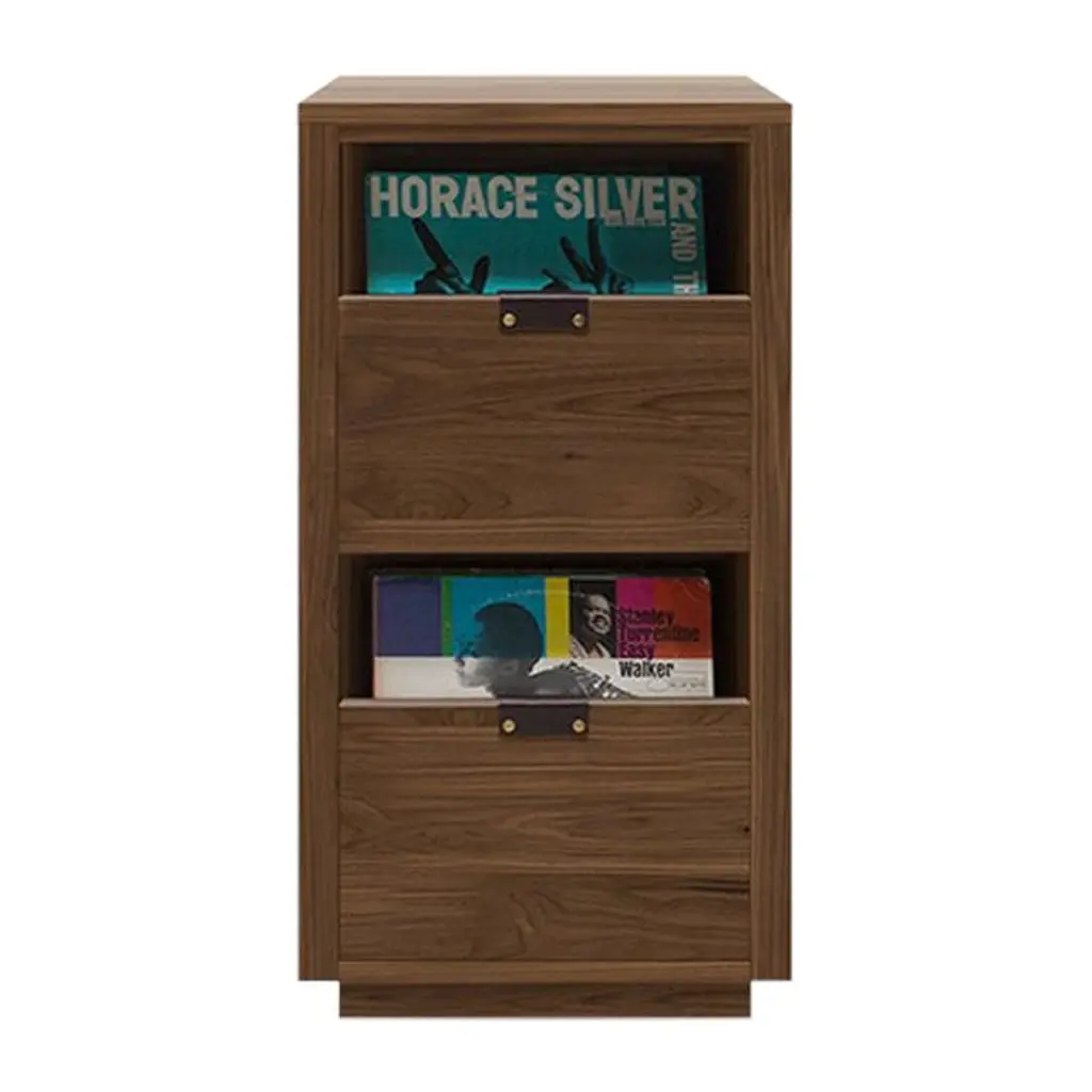 Our Dovetail vinyl storage cabinets utilize a “file drawer” approach to store LPs and allow you to easily flip through an entire record collection while enjoying a visual display of record cover art across the front of the cabinet. The design incorporates many of the same details found in our dovetail record crates into a cabinet that can be customized for your storage needs. Each drawer is constructed with symbol’s exposed English dovetail joinery, vegetable tanned leather handles with solid brass hardware, and utilize heavy-duty full extension soft-close under-mount drawer slides. All of our cabinets are produced in the United States using sustainably harvested solid hardwoods for both strength and beauty.Features:- Store up to 540 LPs- Dovetail drawer boxes with full-extension soft-close undermount drawer slides- Vegetable tanned leather handles with solid brass hardware- Solid wood construction.
