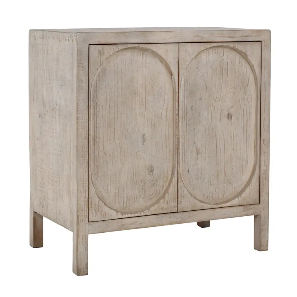 Indian artisans carve the Drant storage cabinet of solid mango wood and apply a multi-layered, hand-rubbed finish to create its exceptional global character. A space-saving standout with a durable beauty, this low cabinet features square feet, paneled doors and textured pulls. Organizing bedroom, office, kitchen and living room necessities with two shelf compartments, this multi-use cabinet is a distinctive storage solution for small rooms.