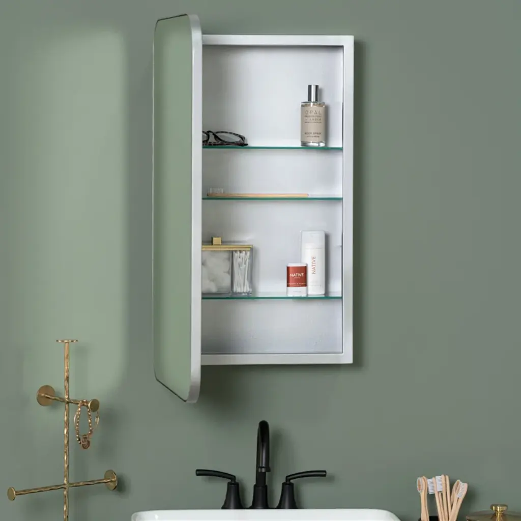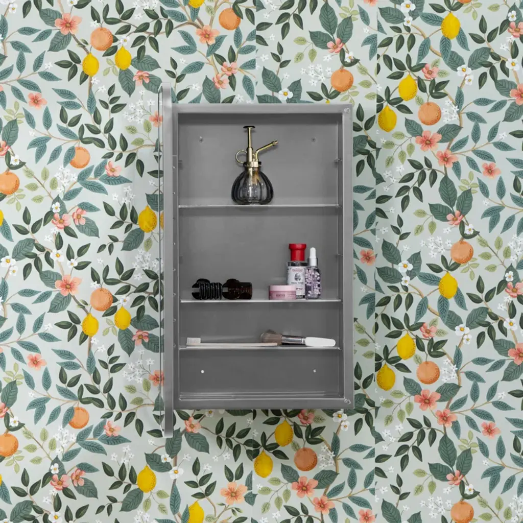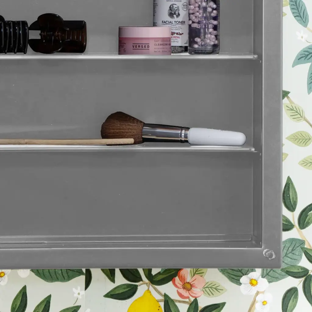 The beautiful recessed medicine cabinet features an intricate design paired with seamless functionality; crafted through hand-application of finish and hand-construction of frame - this piece is sure to add a functional statement to a space of any style.